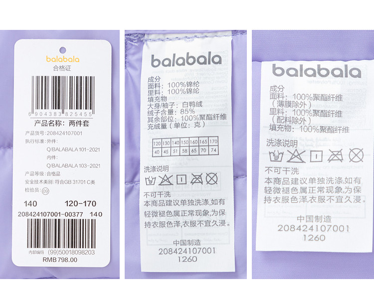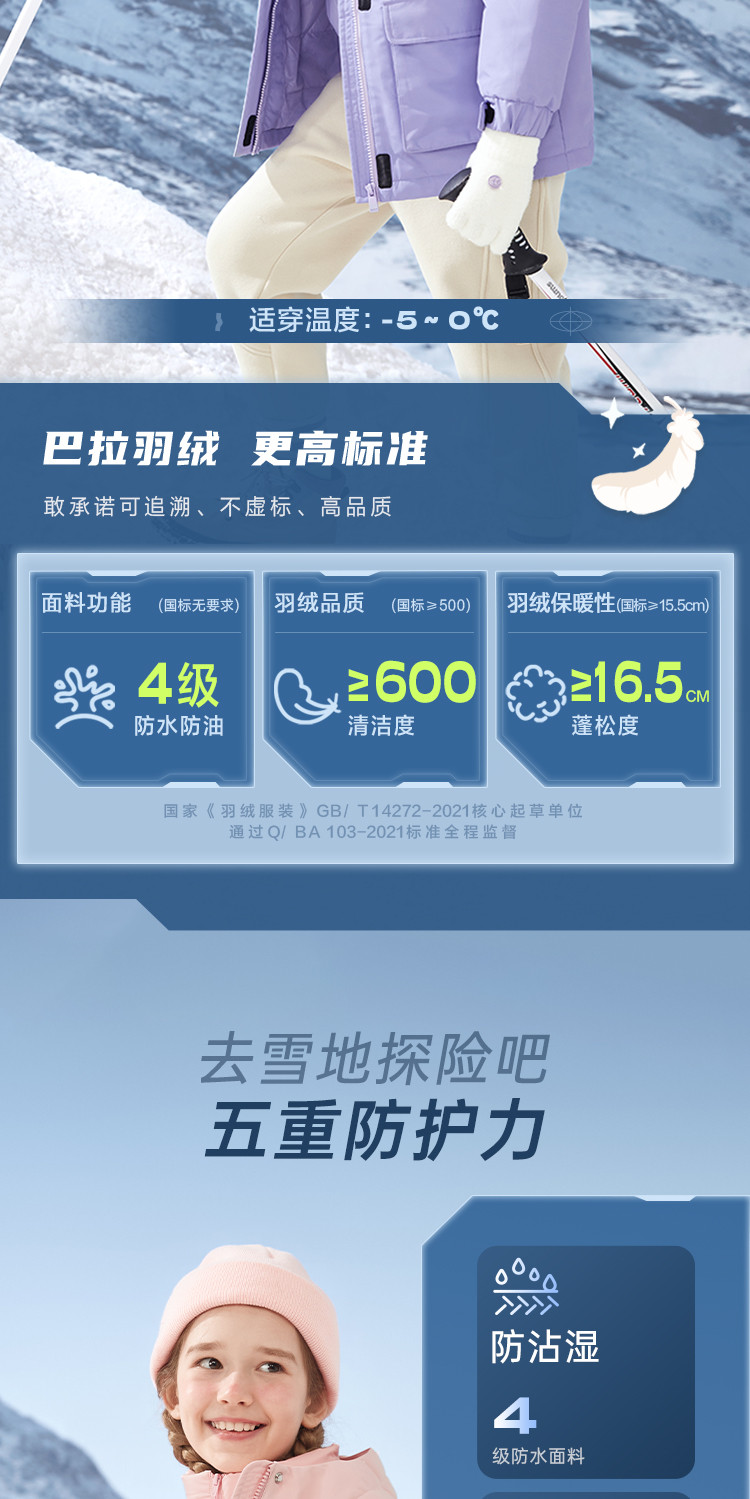 | 165cm(充绒量70g) | 68 | 51 | 165 | 83.5 | 10-11岁 | 112 | 165 |
