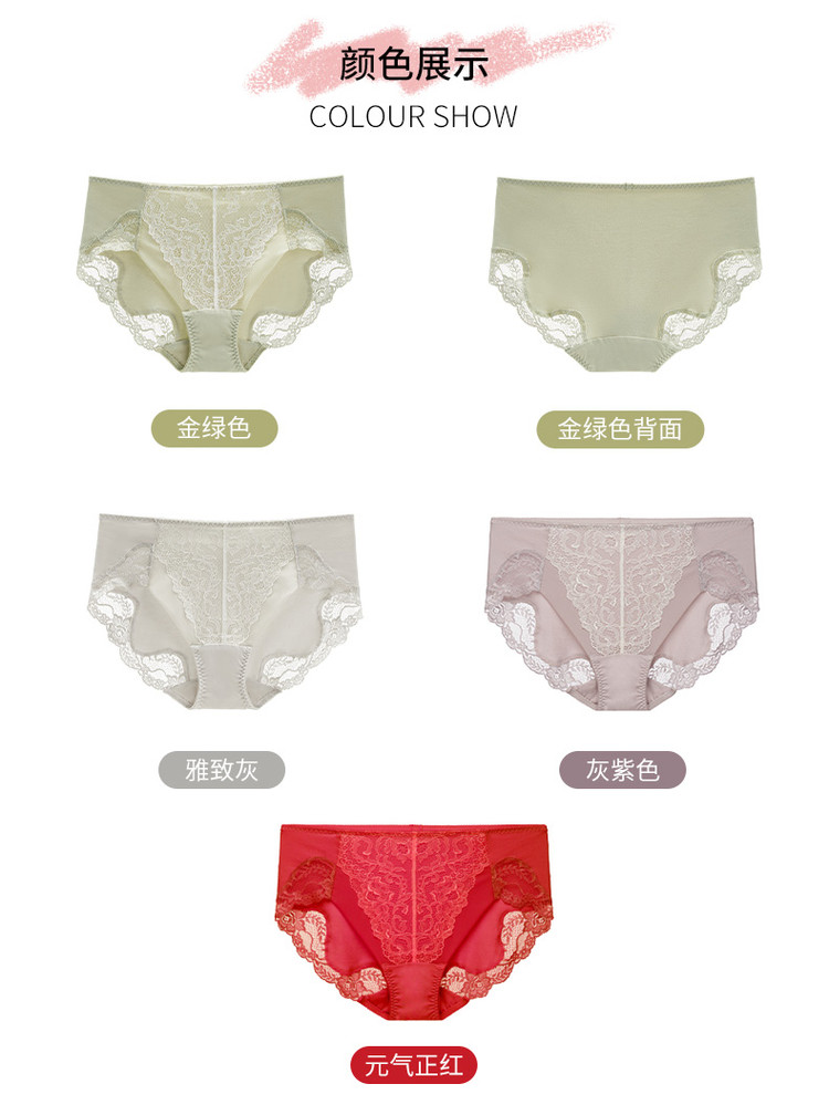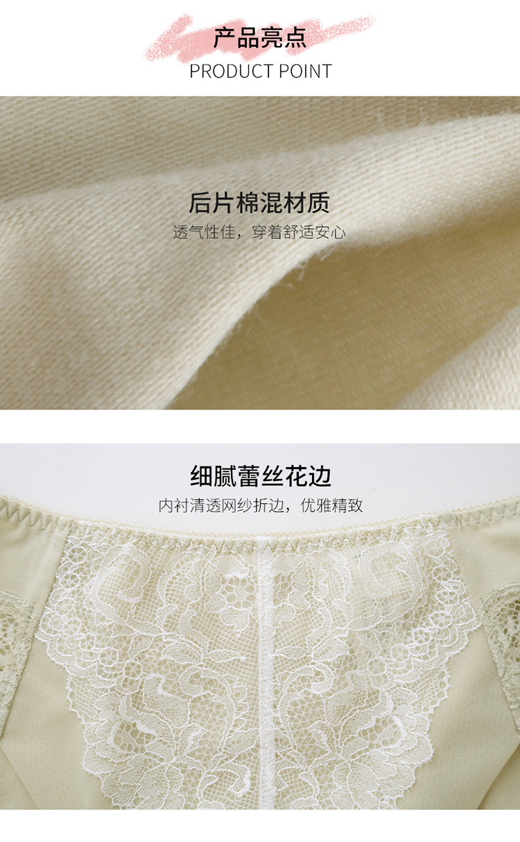 商品名称:棉混舒适优雅蕾丝中高腰三角裤内裤女 448005
