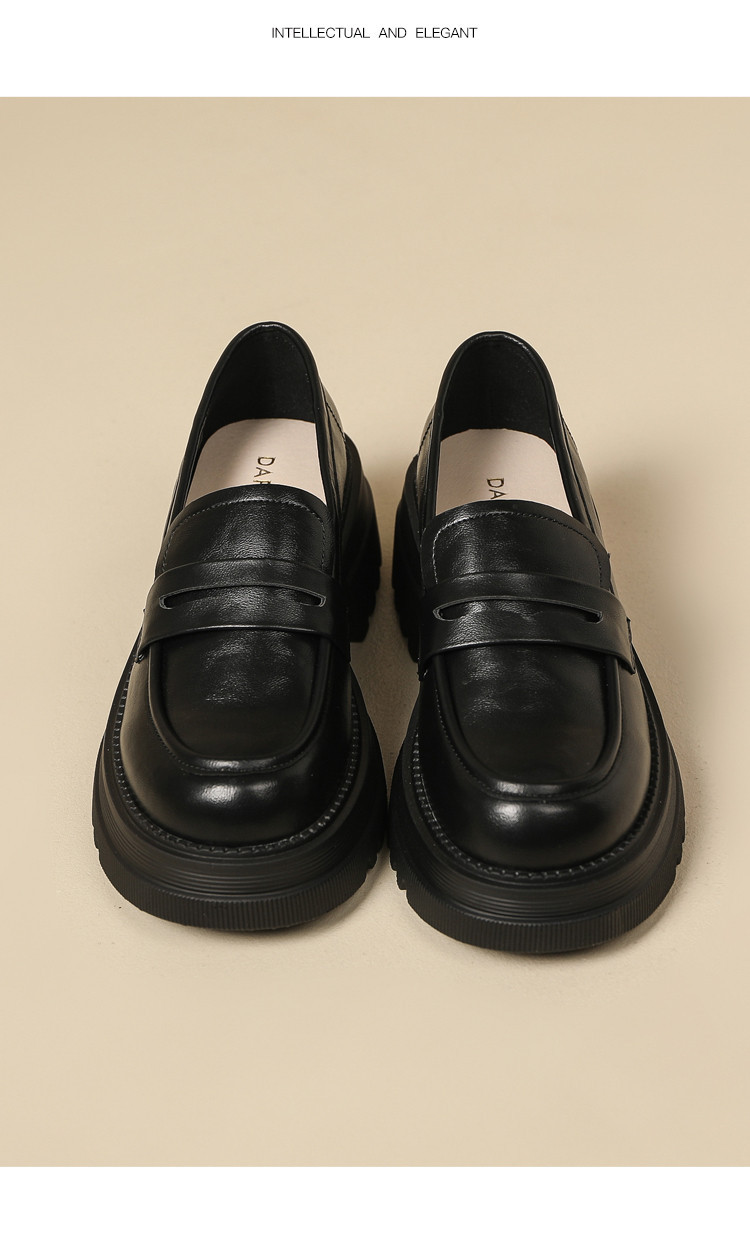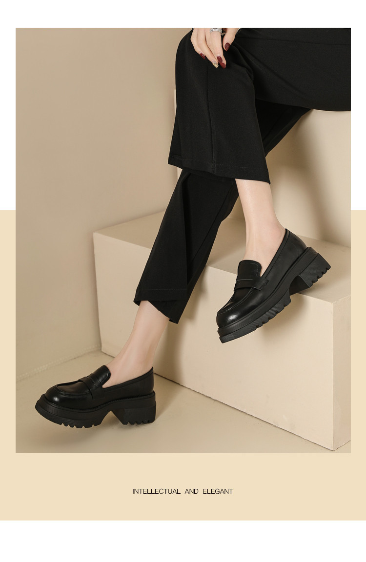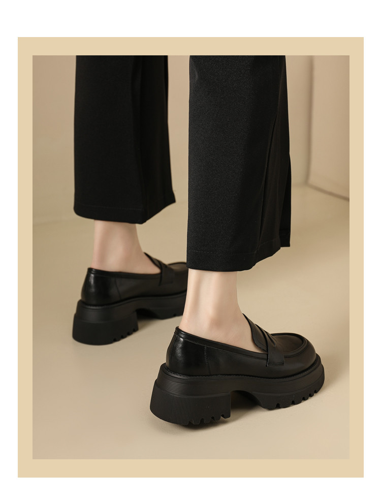厚底乐福鞋女25款春季女鞋圆头粗跟一脚蹬英伦风女鞋JK单鞋女 490135
