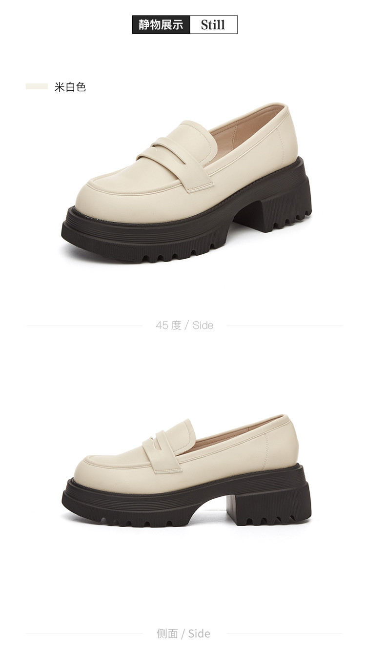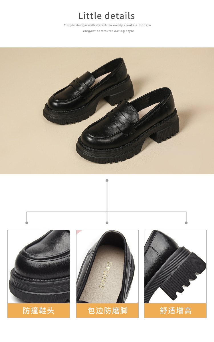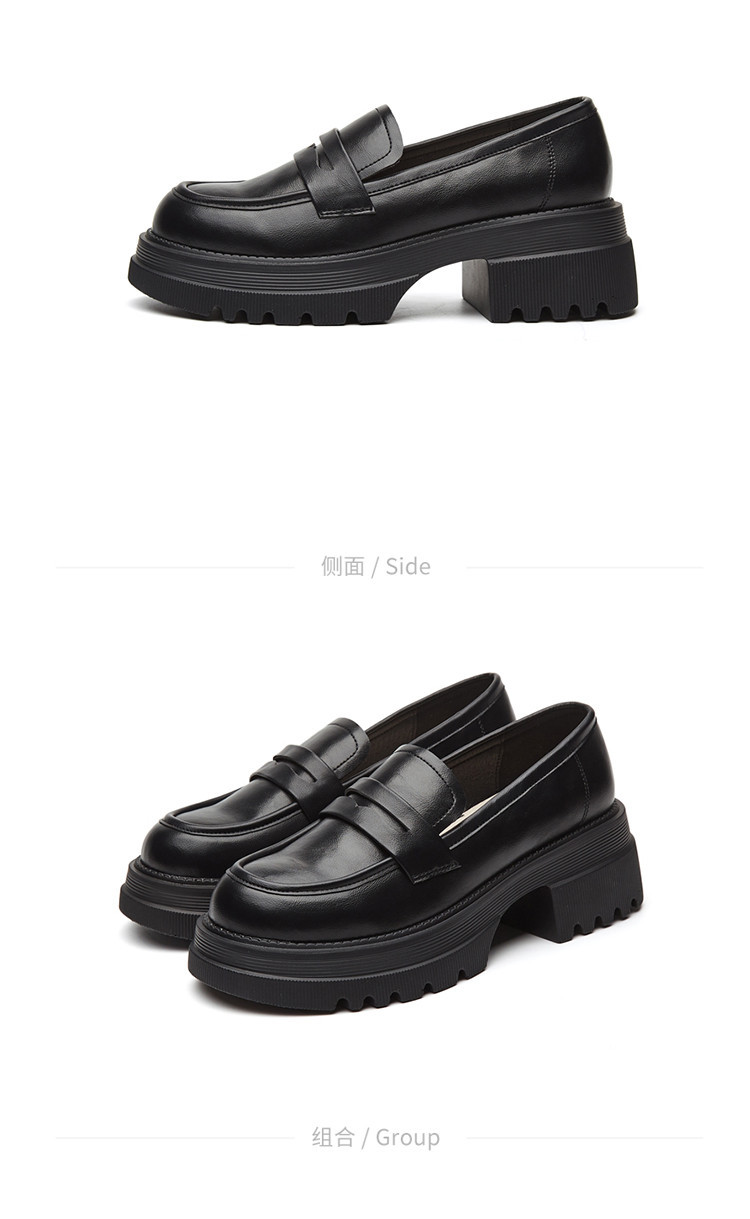 商品名称:厚底乐福鞋女25款春季女鞋圆头粗跟一脚蹬英伦风女鞋JK单鞋女 490135