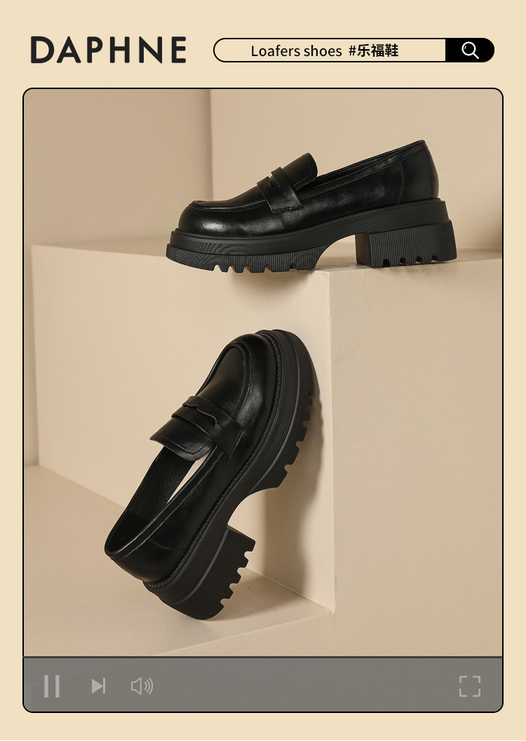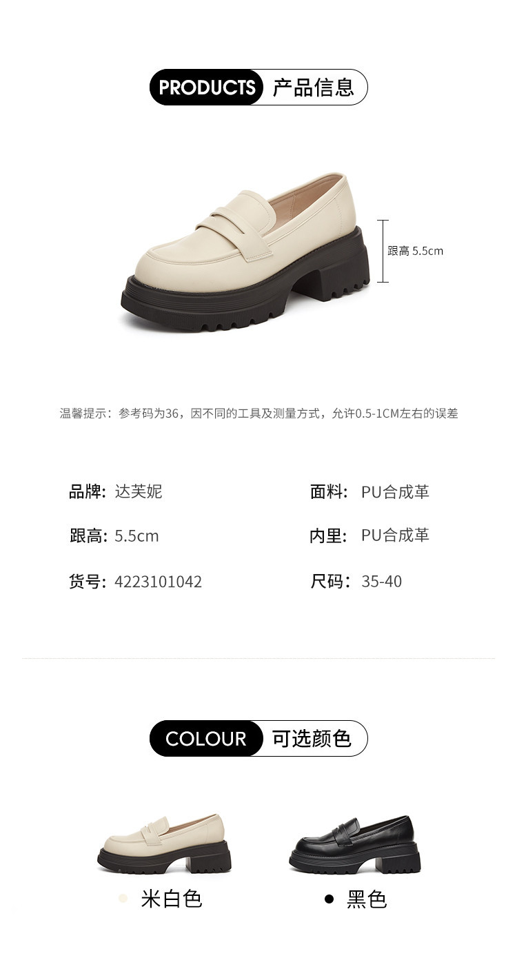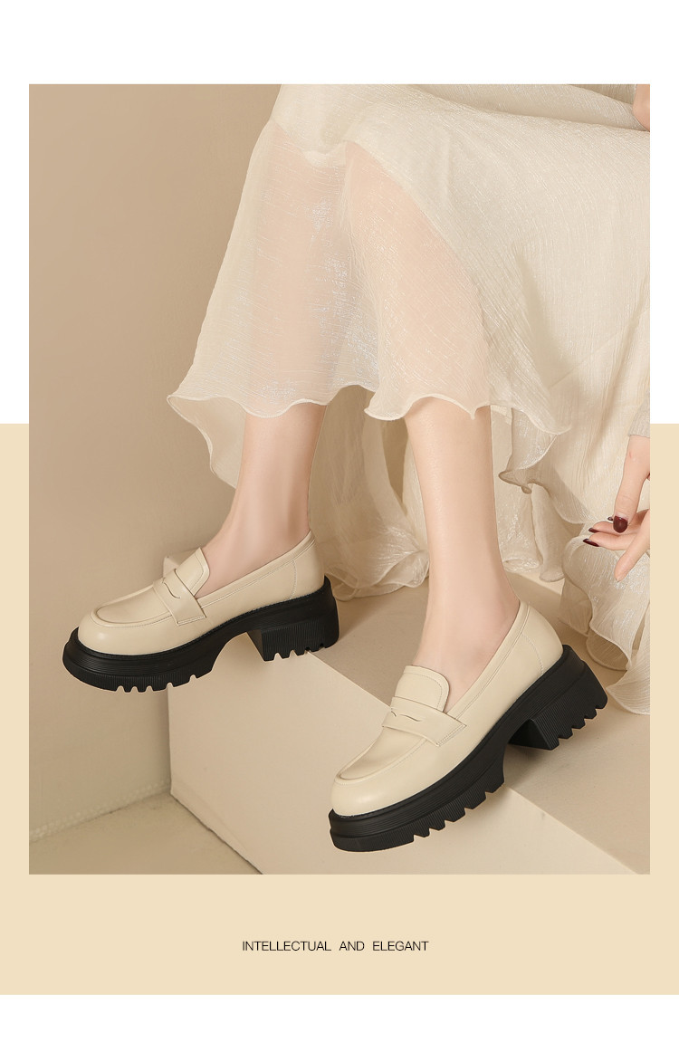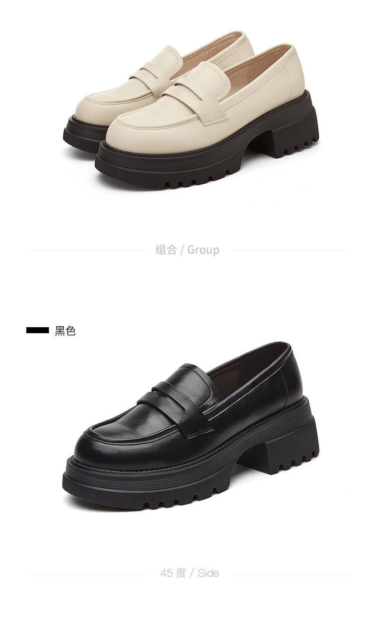 商品名称:厚底乐福鞋女25款春季女鞋圆头粗跟一脚蹬英伦风女鞋JK单鞋女 490135