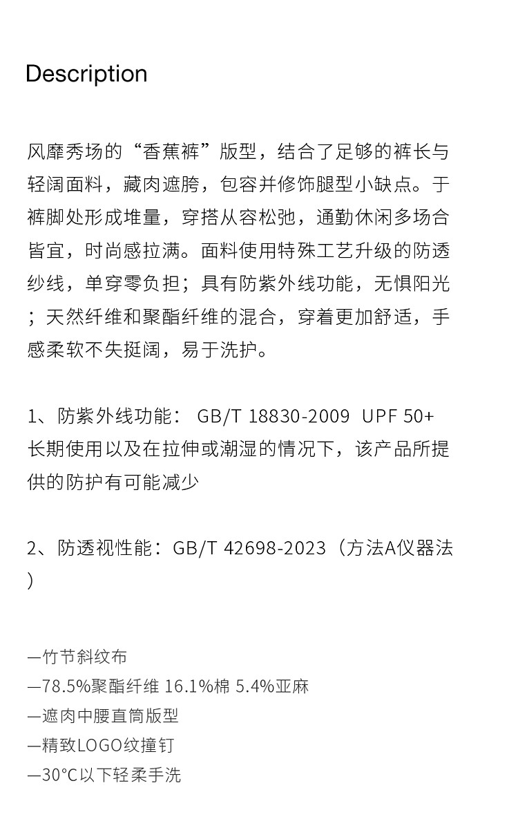 商品名称:春装香蕉裤显瘦阔腿直筒长裤女 403471