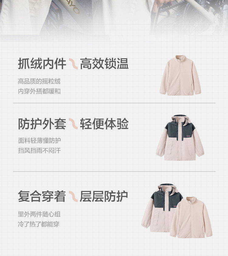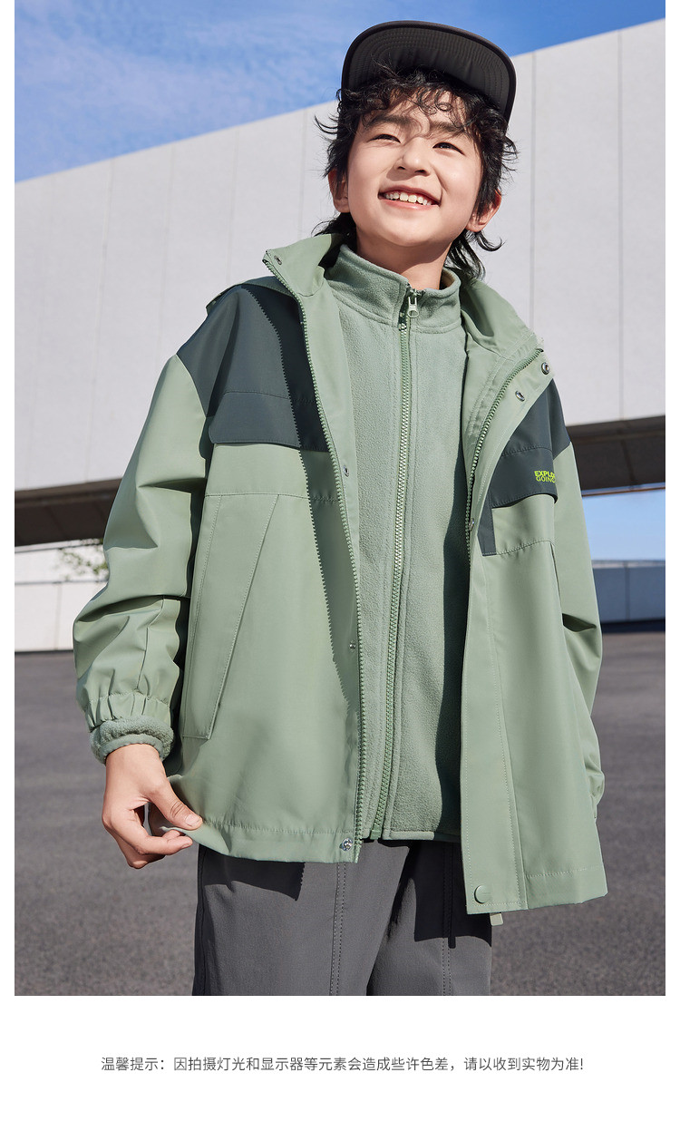 商品名称:户外风一衣三穿两件套儿童外套男童女童春秋装中大童摇粒绒运动服 018309