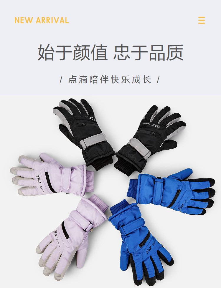 商品名称:儿童滑雪手套秋冬保暖舒适男童女童中大童防泼水防滑户外时尚亲子 250117
