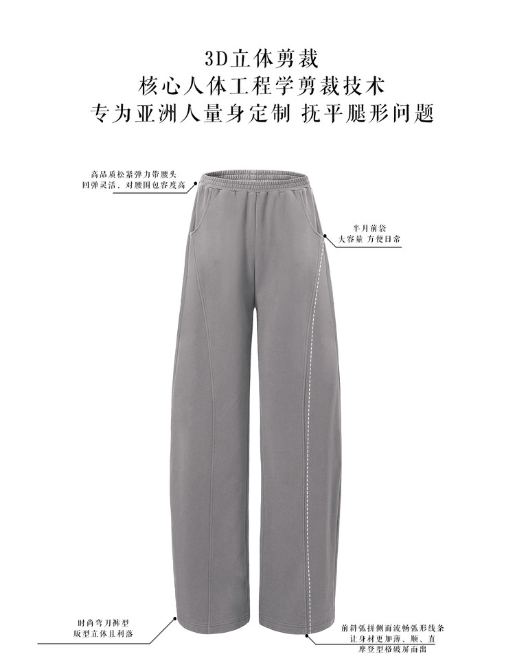 商品名称:【自在卫裤】高腰宽松阔腿弯刀裤女春秋热销款水洗休闲长裤 823553