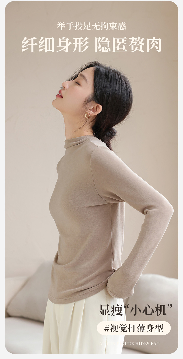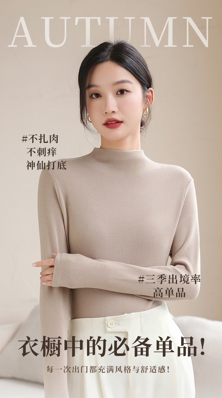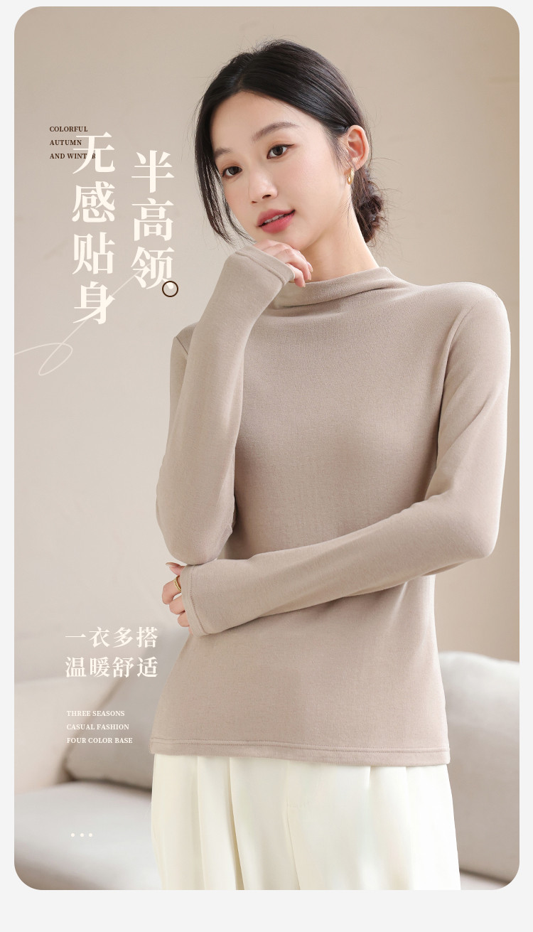 商品名称:【含绵羊毛】可外穿女士半高领内搭打底衫保暖内衣弹力长袖上衣女 582795