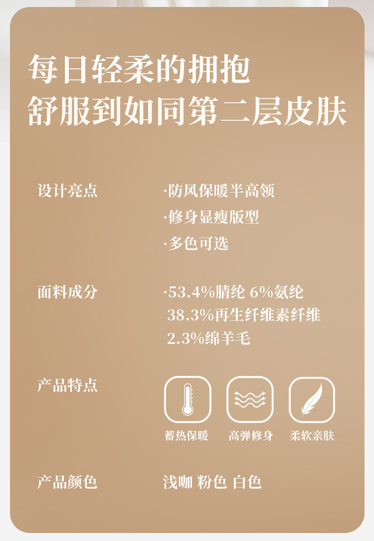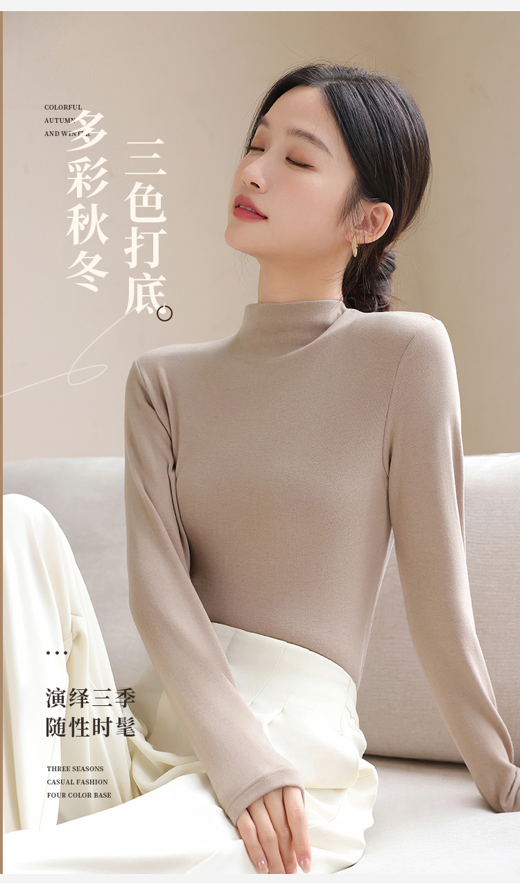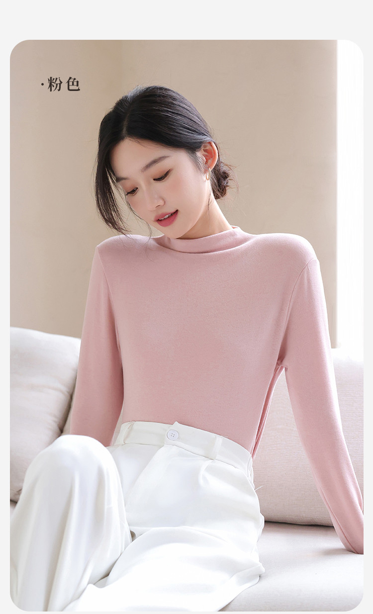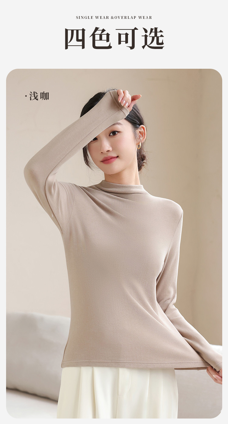 商品名称:【含绵羊毛】可外穿女士半高领内搭打底衫保暖内衣弹力长袖上衣女 582795