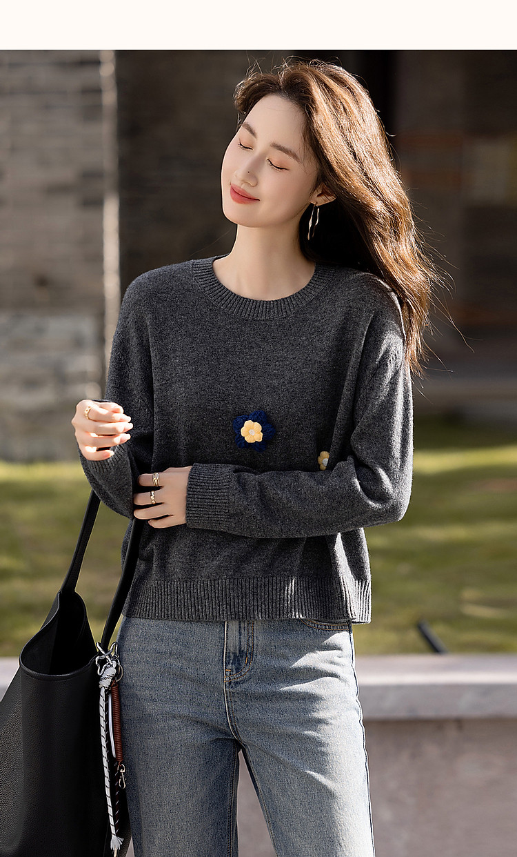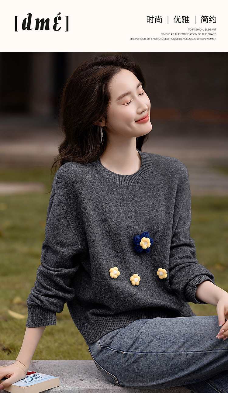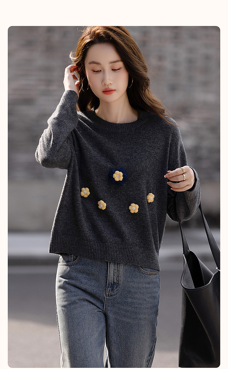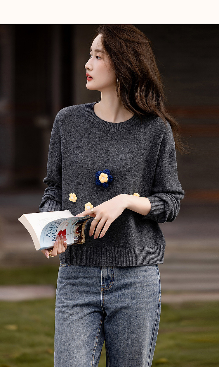 商品名称:【100%呼吸感绵羊毛】秋冬立体手摇花线衫藏肉针织衫女上衣 842881