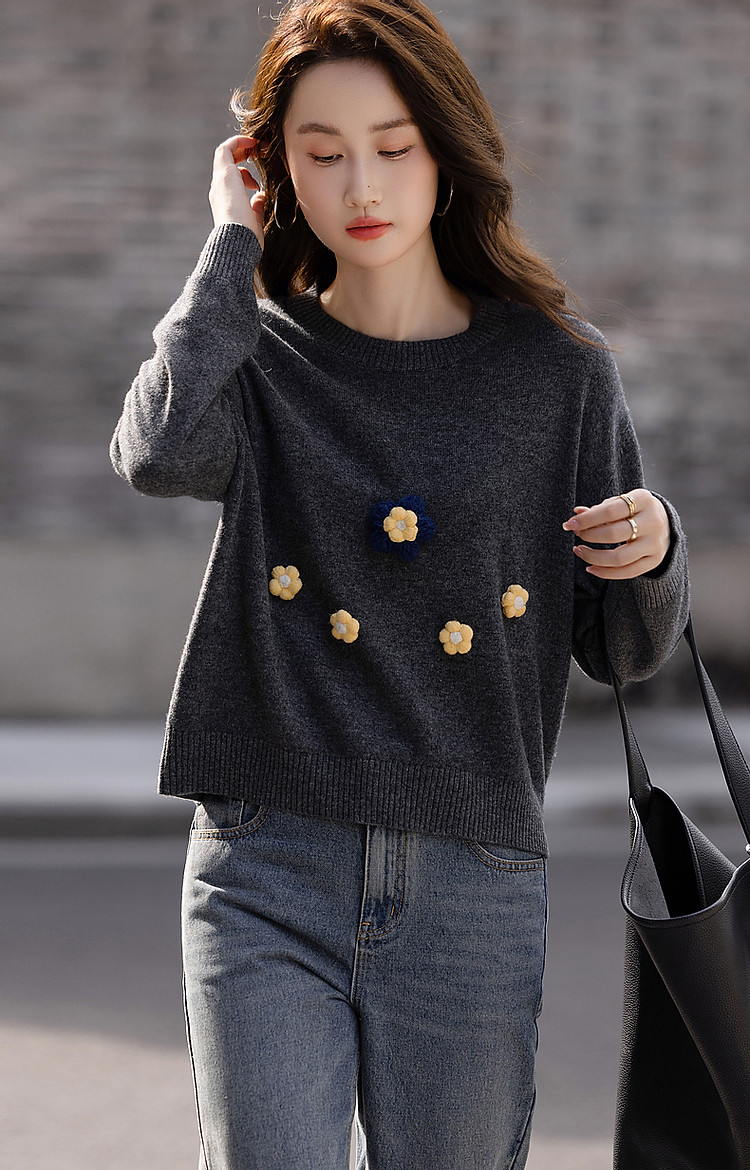 【100%呼吸感绵羊毛】秋冬立体手摇花线衫藏肉针织衫女上衣 842881