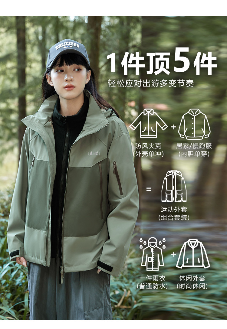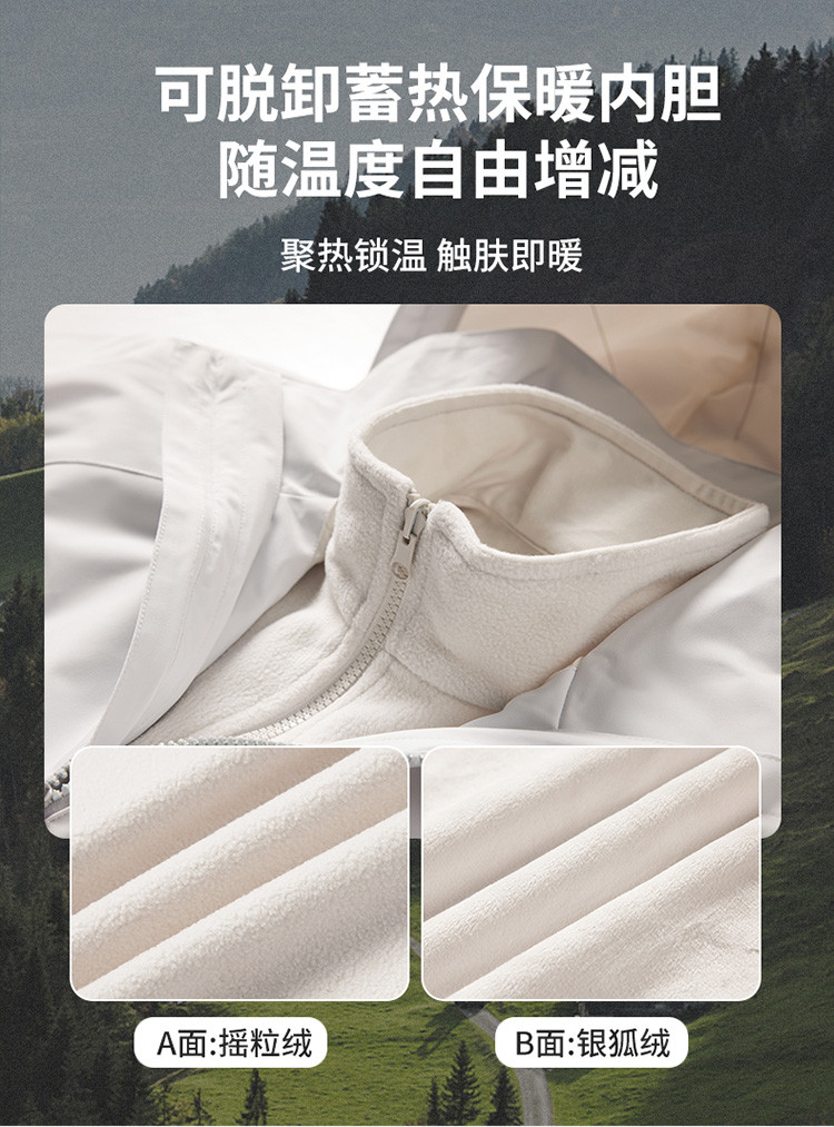 商品名称:【户外探险新宠】冬季加绒三合一运动风衣户外情侣徒步登山外套女 970241