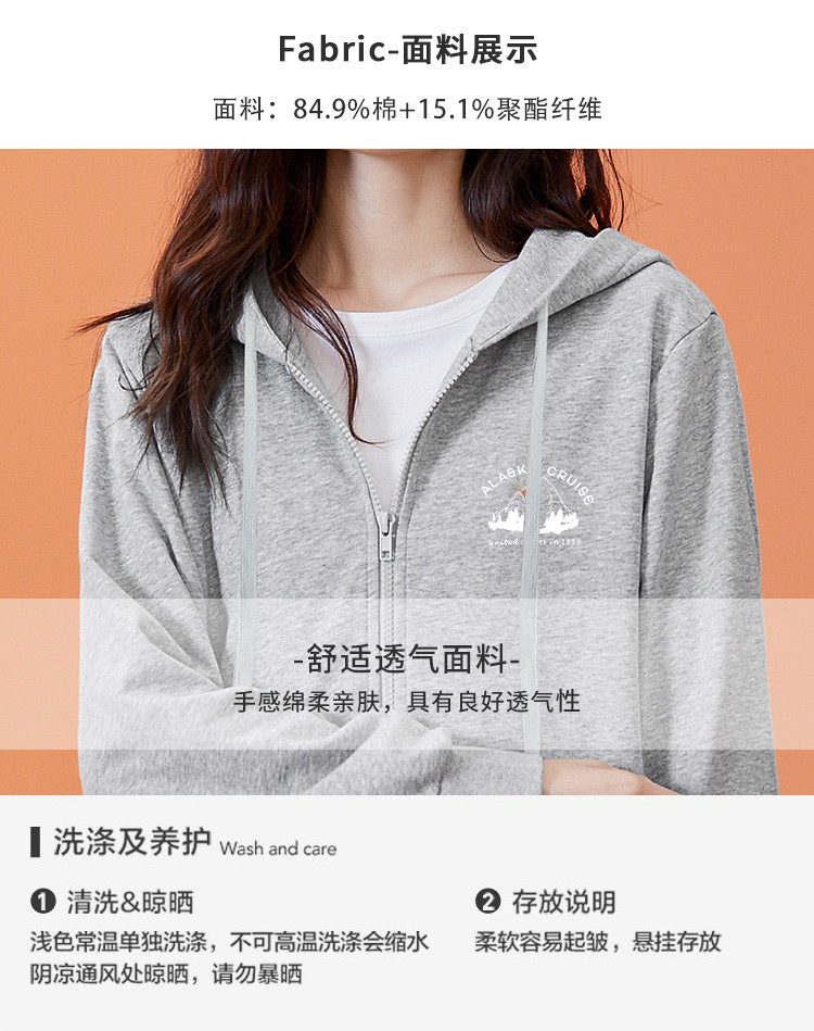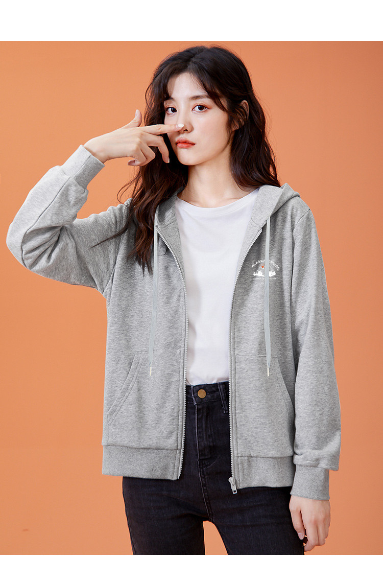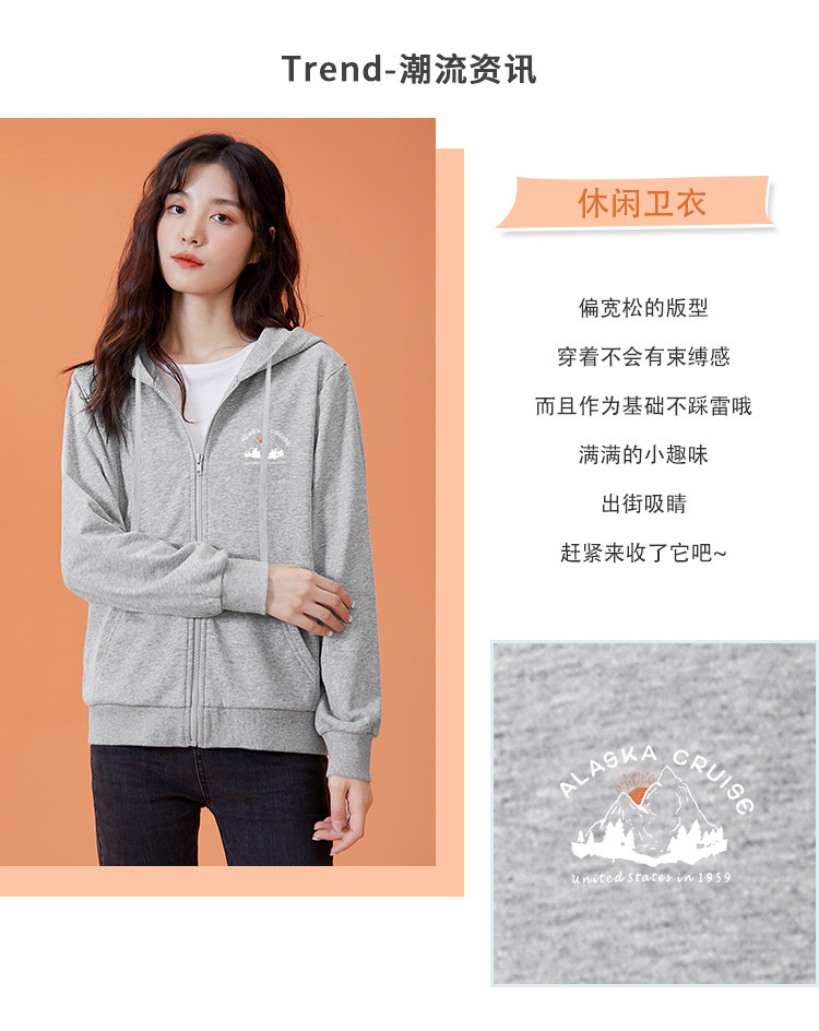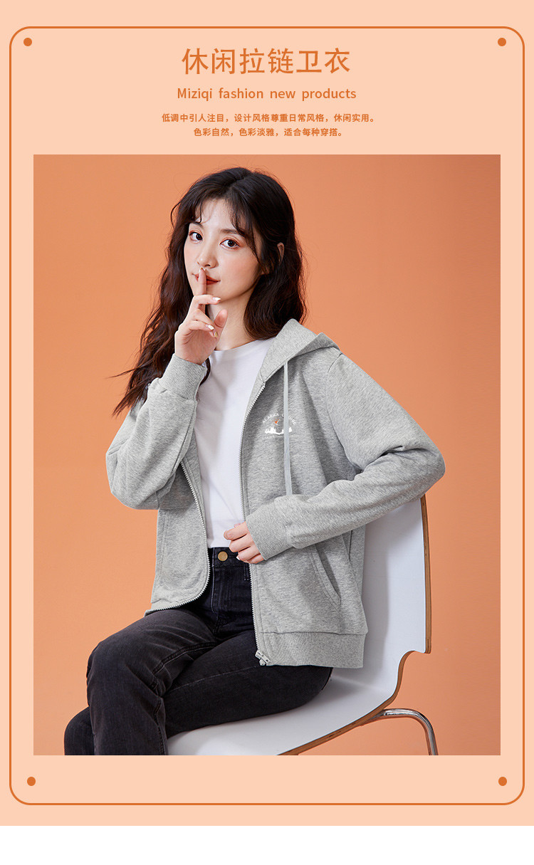 商品名称:米子旗春秋大码MM连帽卫衣外套早春款拉链开衫长袖外套 919322