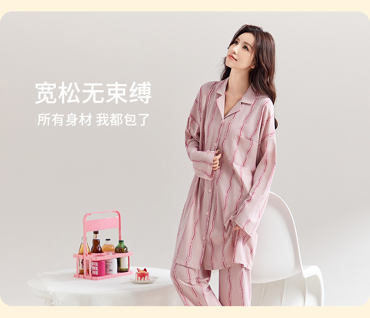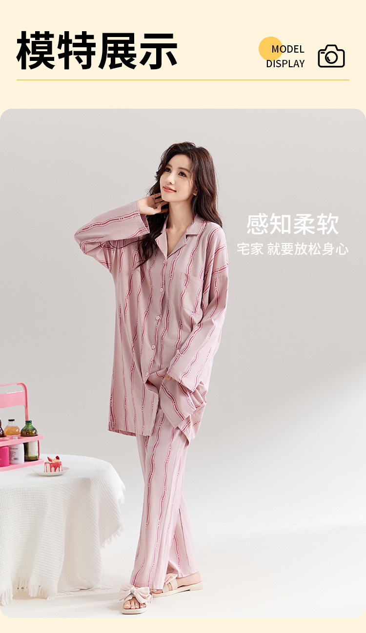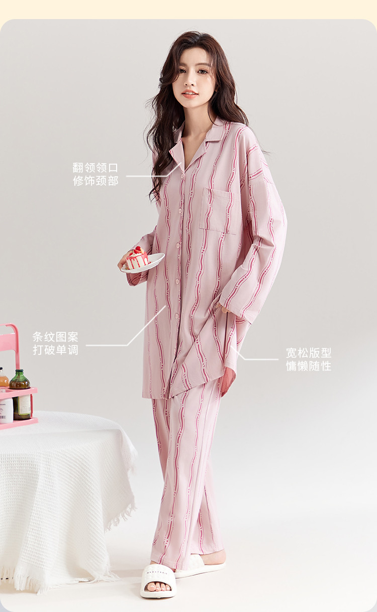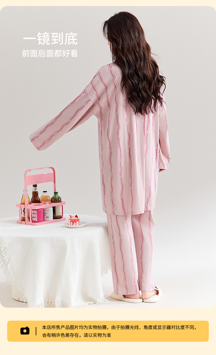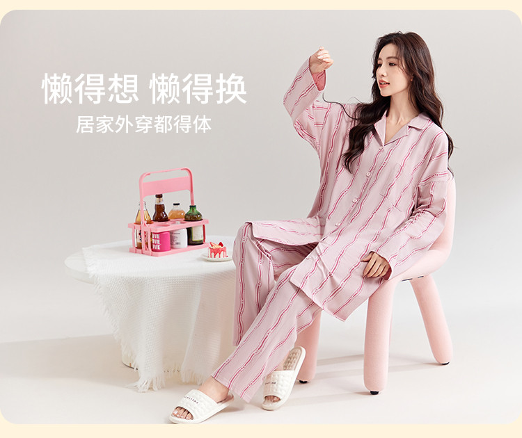 商品名称:【100%棉】可外穿长袖长裤家居服套装女士春秋款时尚条纹睡衣 694219