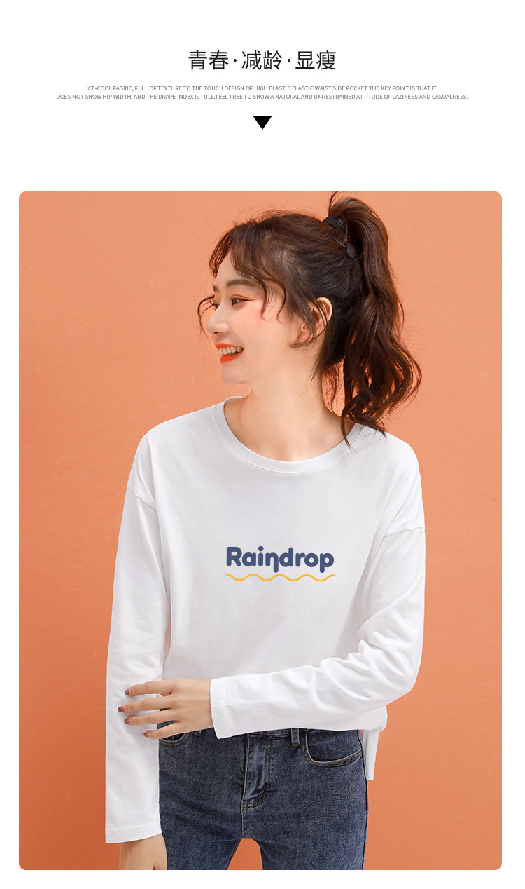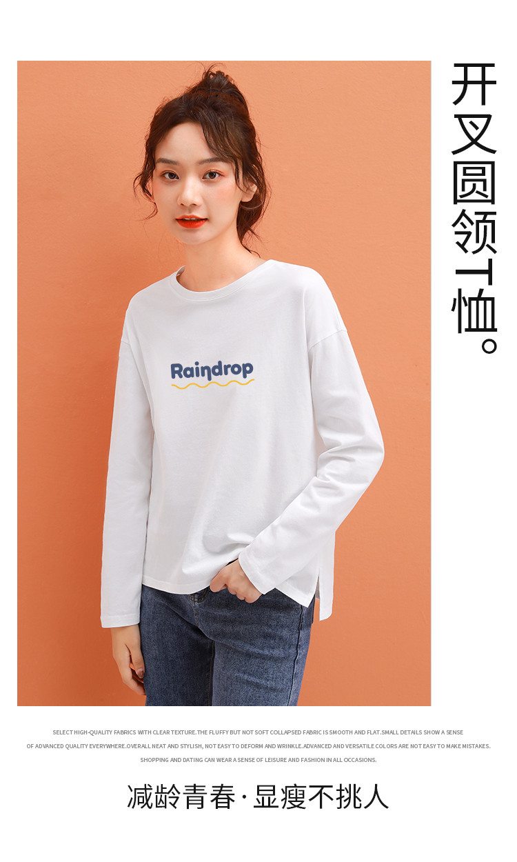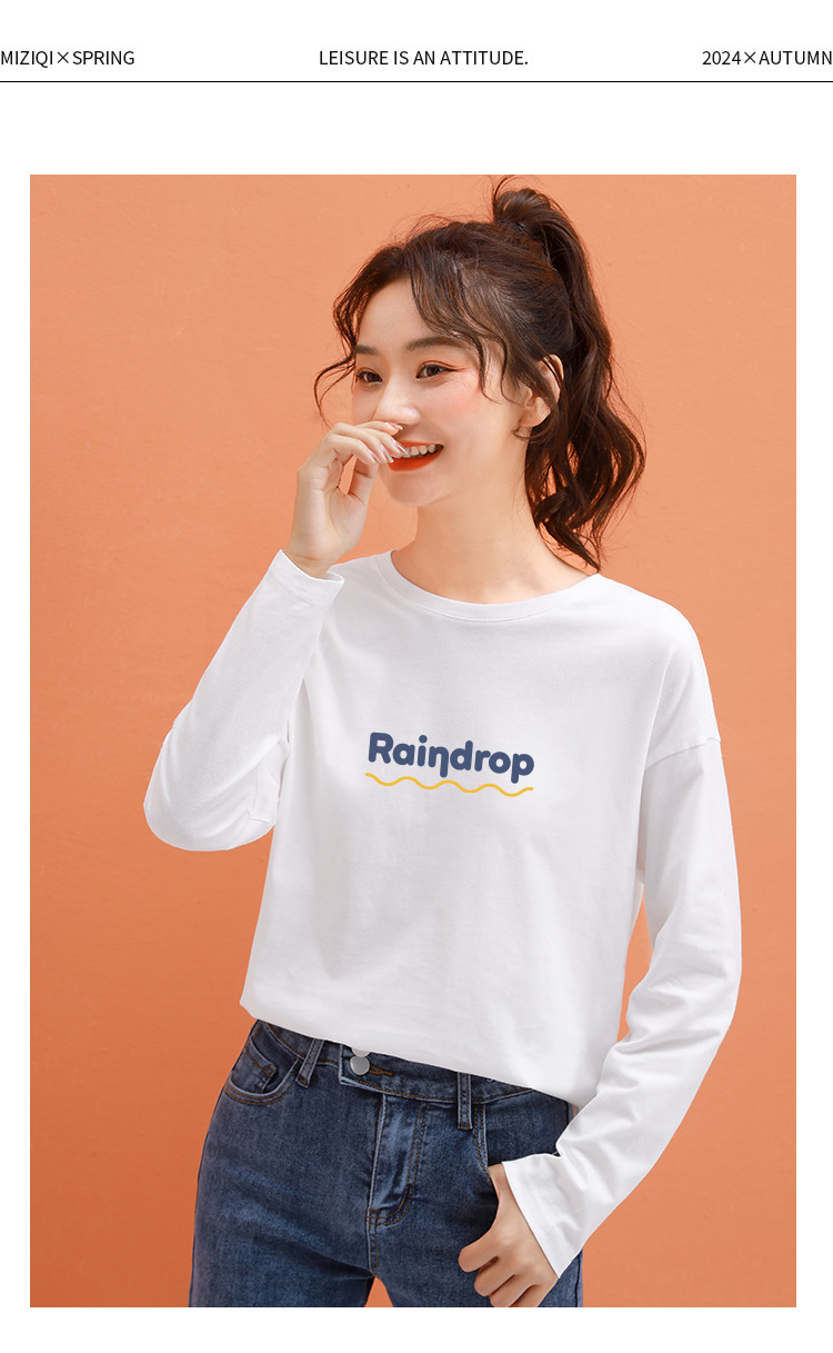商品名称:米子旗春秋女式T恤宽松圆领字母印花百搭潮流长袖上衣女 719002