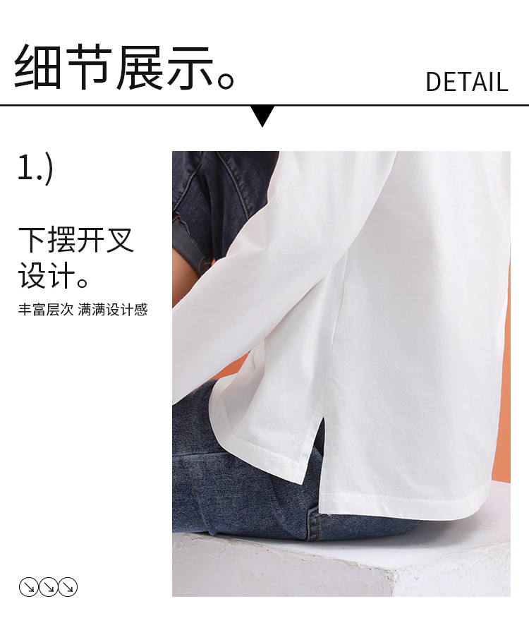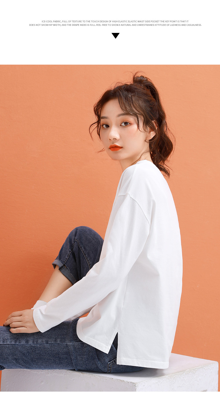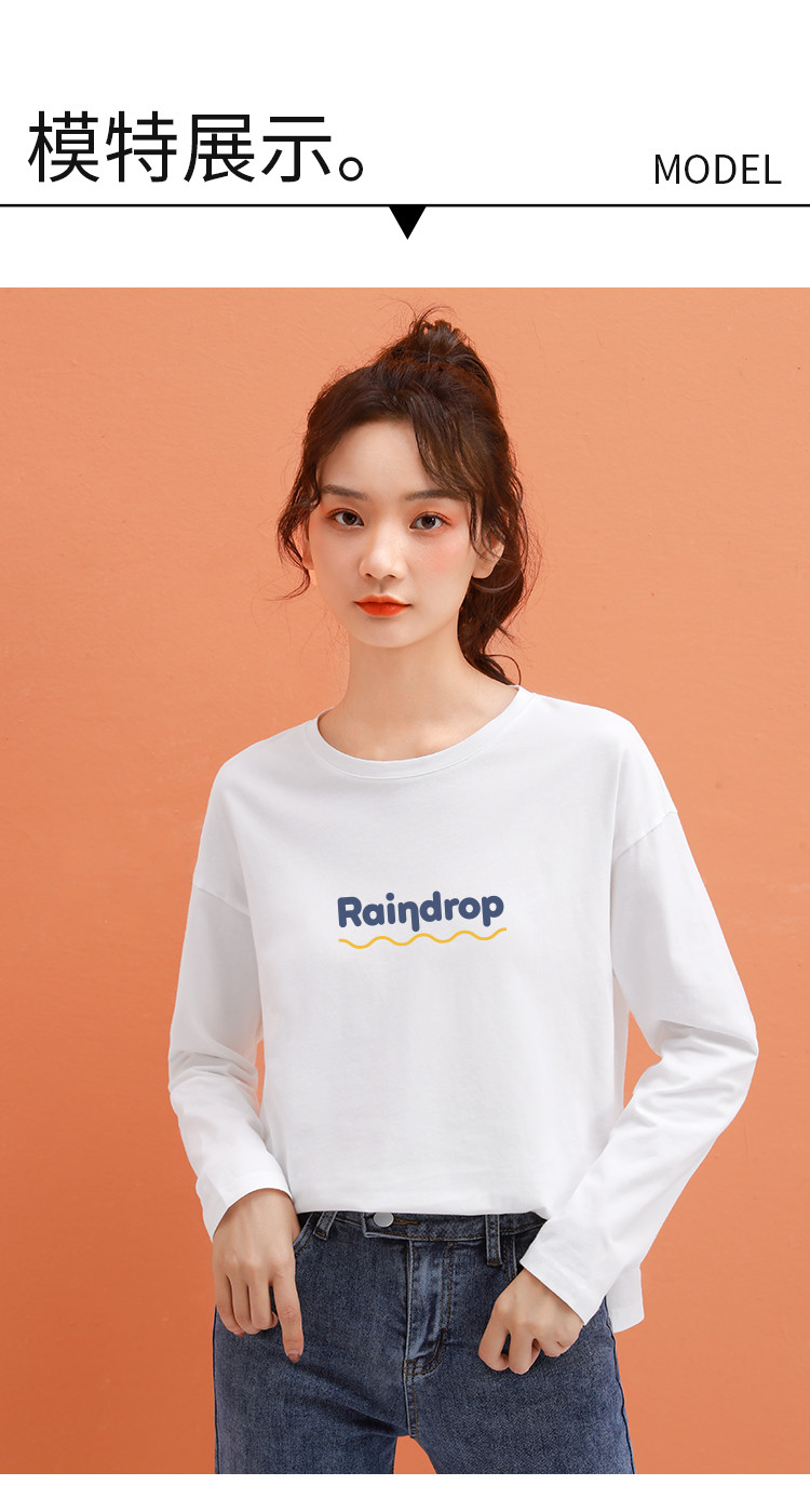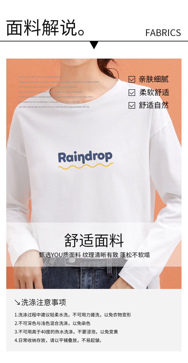 商品名称:米子旗春秋女式T恤宽松圆领字母印花百搭潮流长袖上衣女 719002