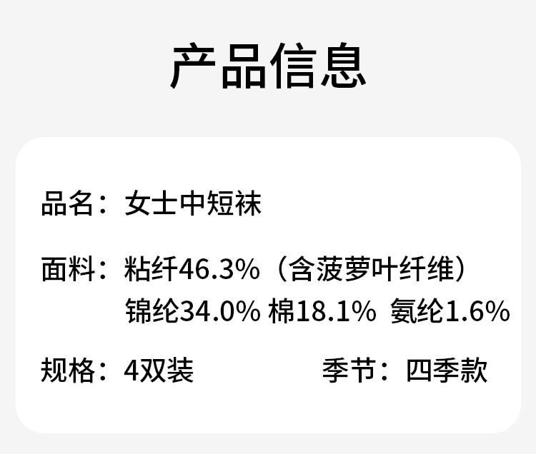 商品名称:【4双抑菌防臭袜】中筒袜秋款透气运动无骨防臭袜子女袜菠萝袜 403275