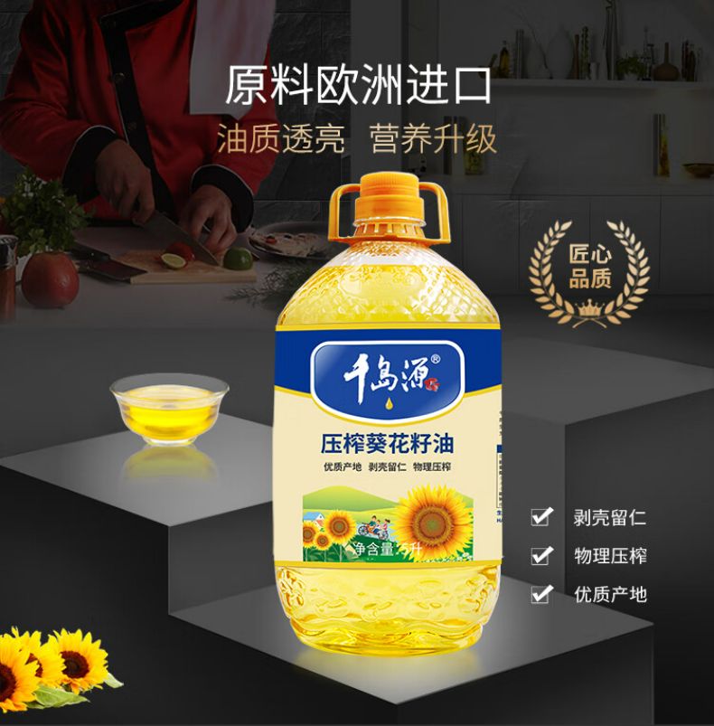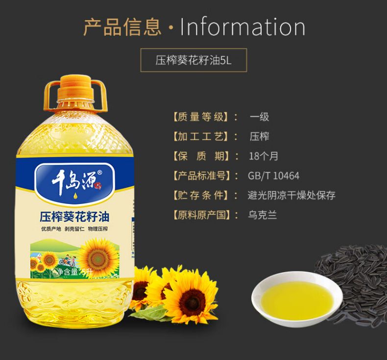 商品名称:千岛源葵花籽油5L 压榨一级食用油 瓜子油清香不油腻 葵花籽油5L