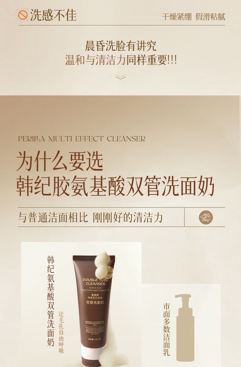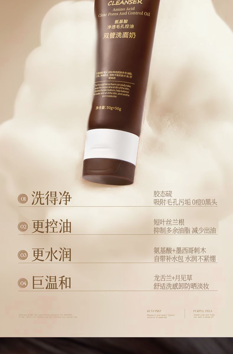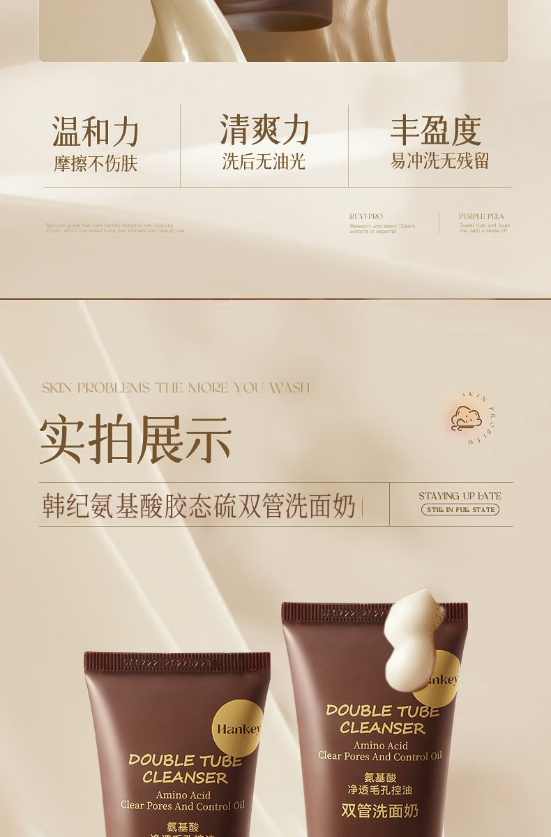 商品名称:Hankey/韩纪 氨基酸净透毛孔控油双管洗面奶50g+50g