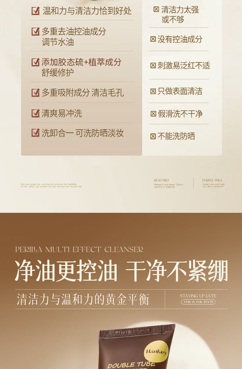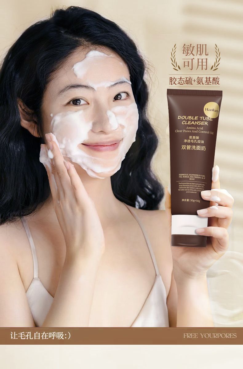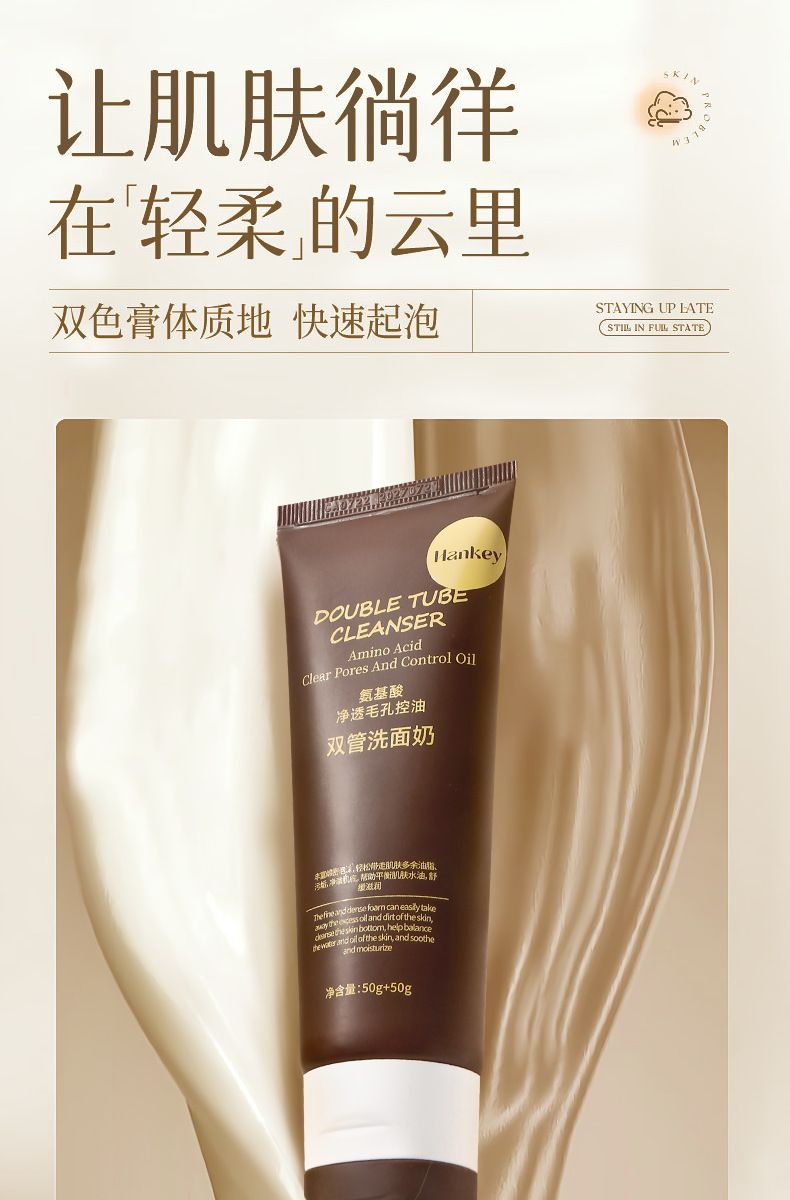 Hankey/韩纪 氨基酸净透毛孔控油双管洗面奶50g+50g