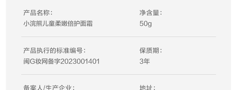 商品名称:小浣熊 儿童柔嫩倍护面霜 50g