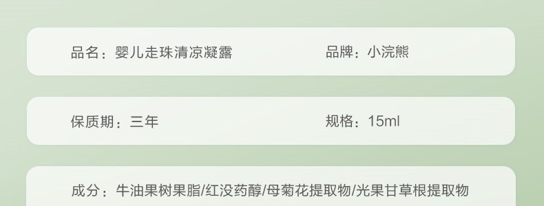 商品名称:小浣熊 婴儿舒缓凝露 15ml(原叮叮露)