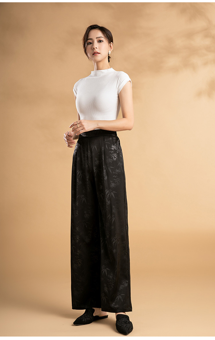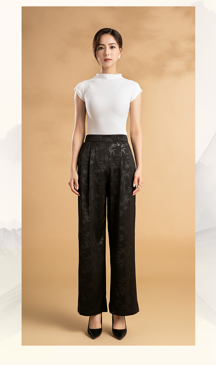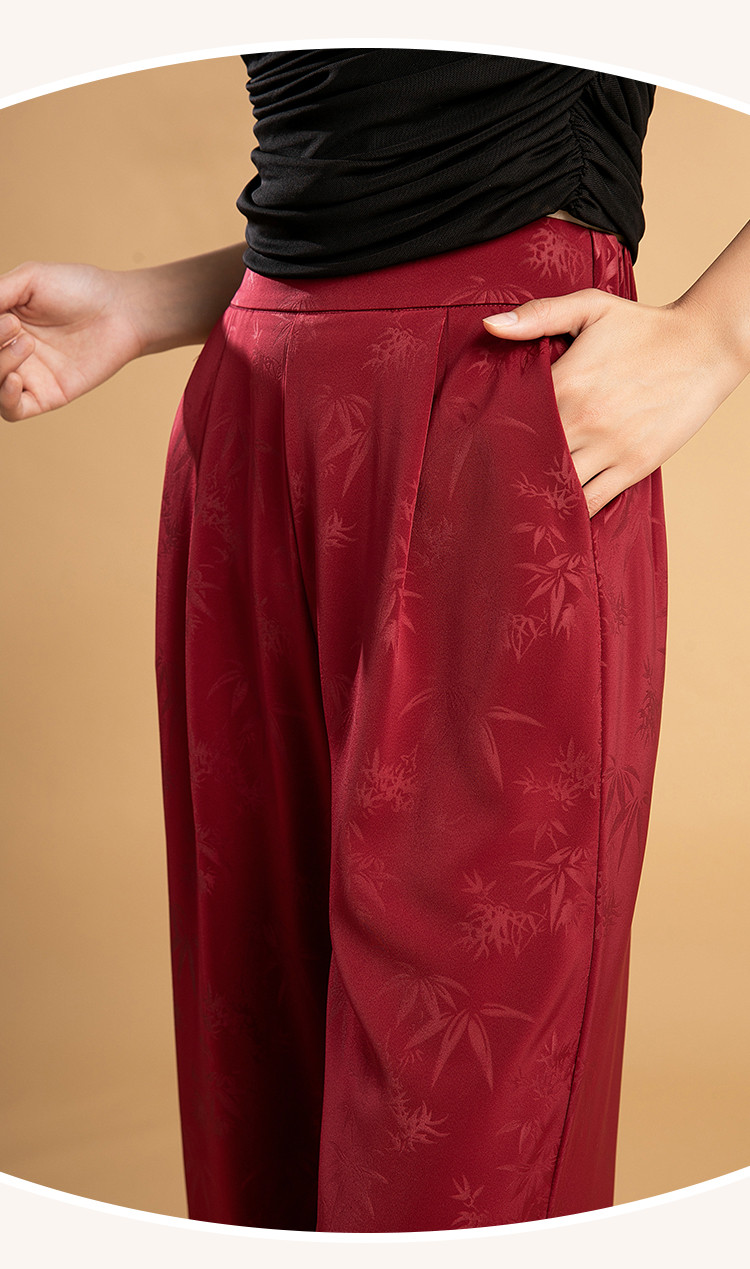 商品名称:“圣诞红与国风碰撞”阔腿裤女高腰垂感慵懒休闲显瘦百搭休闲裤 704991