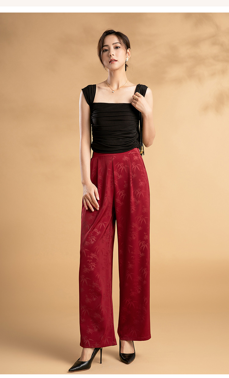 “圣诞红与国风碰撞”阔腿裤女高腰垂感慵懒休闲显瘦百搭休闲裤 704991