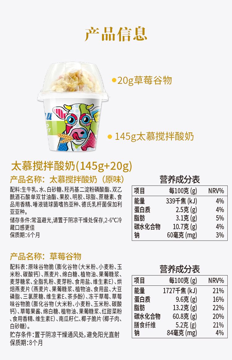 商品名称:太慕搅拌酸奶145g*6杯原味礼盒装