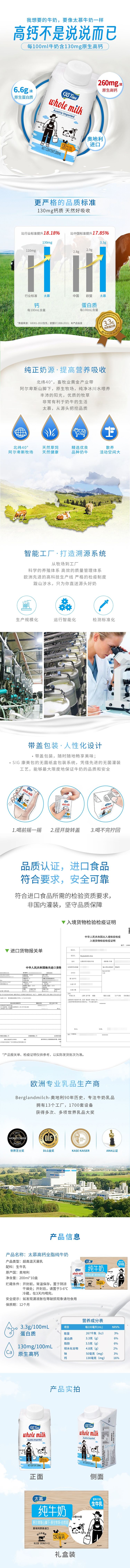 商品名称:奥地利原装进口 太慕原生高钙全脂纯牛奶200ml*10盒