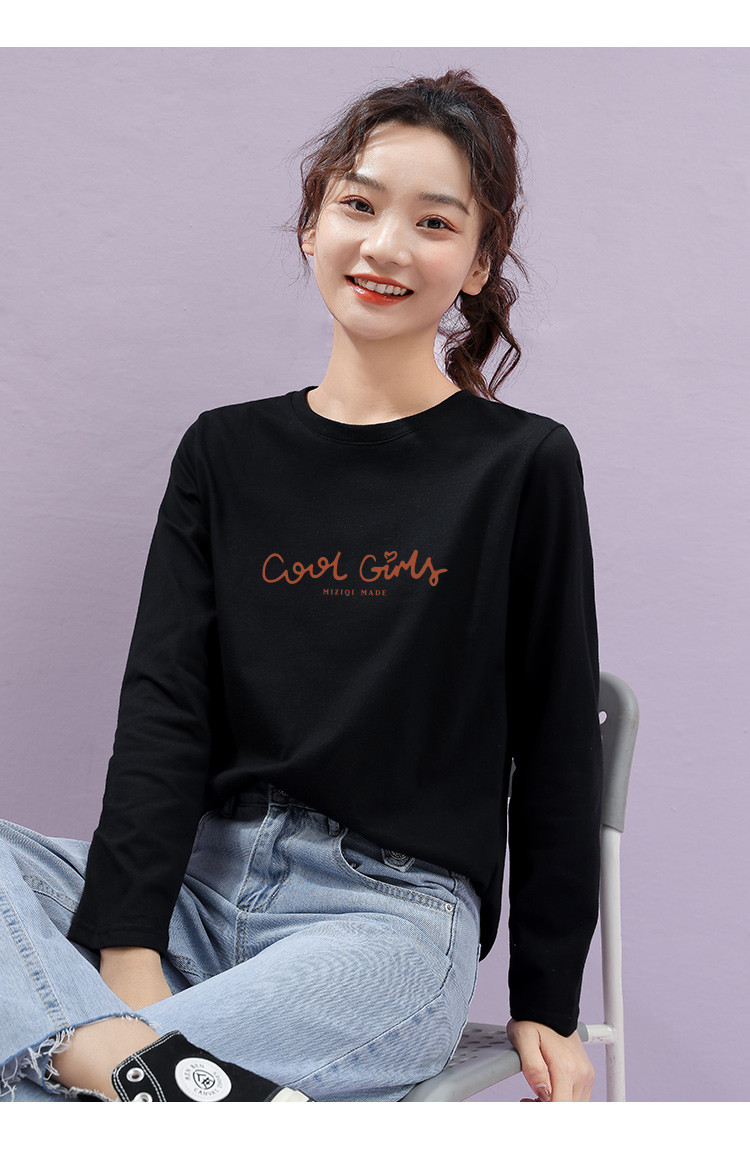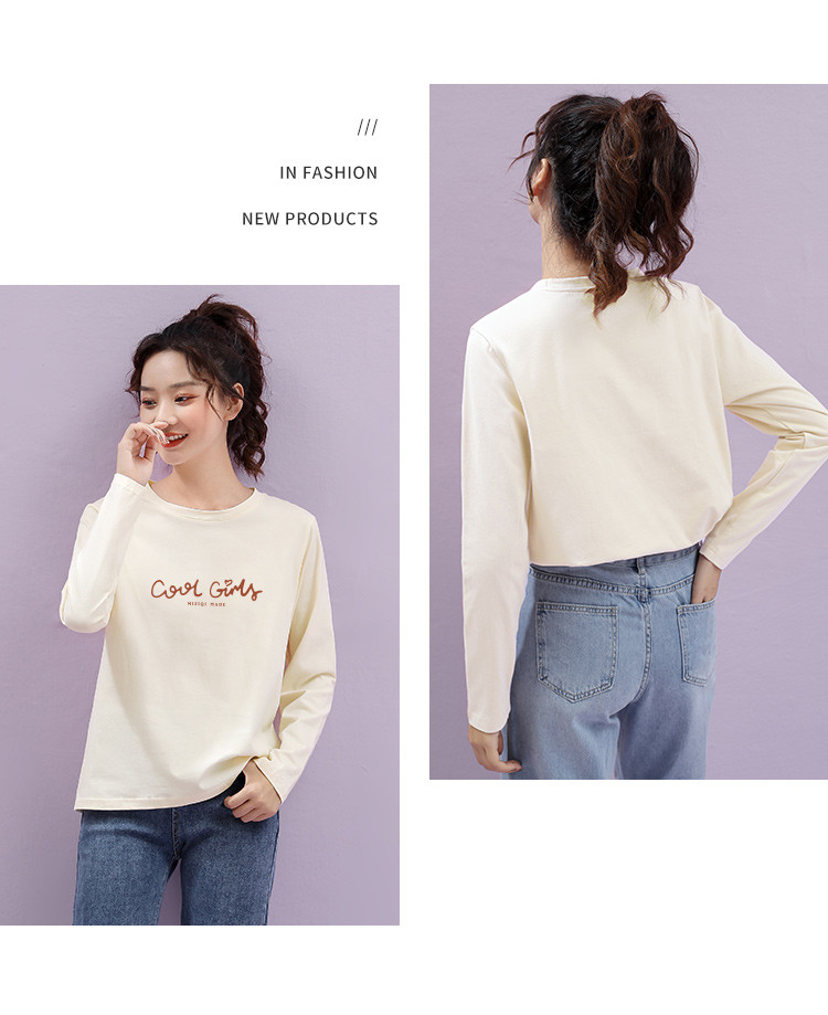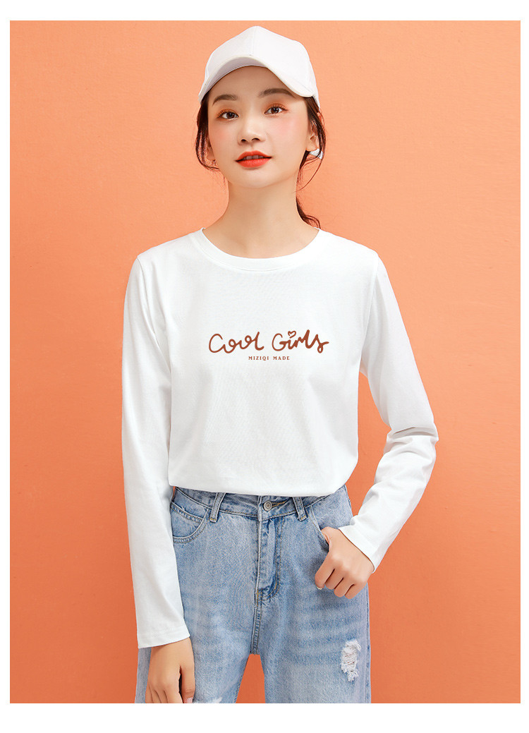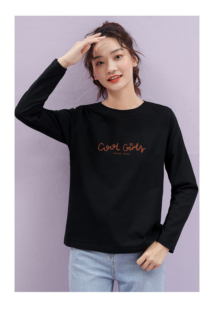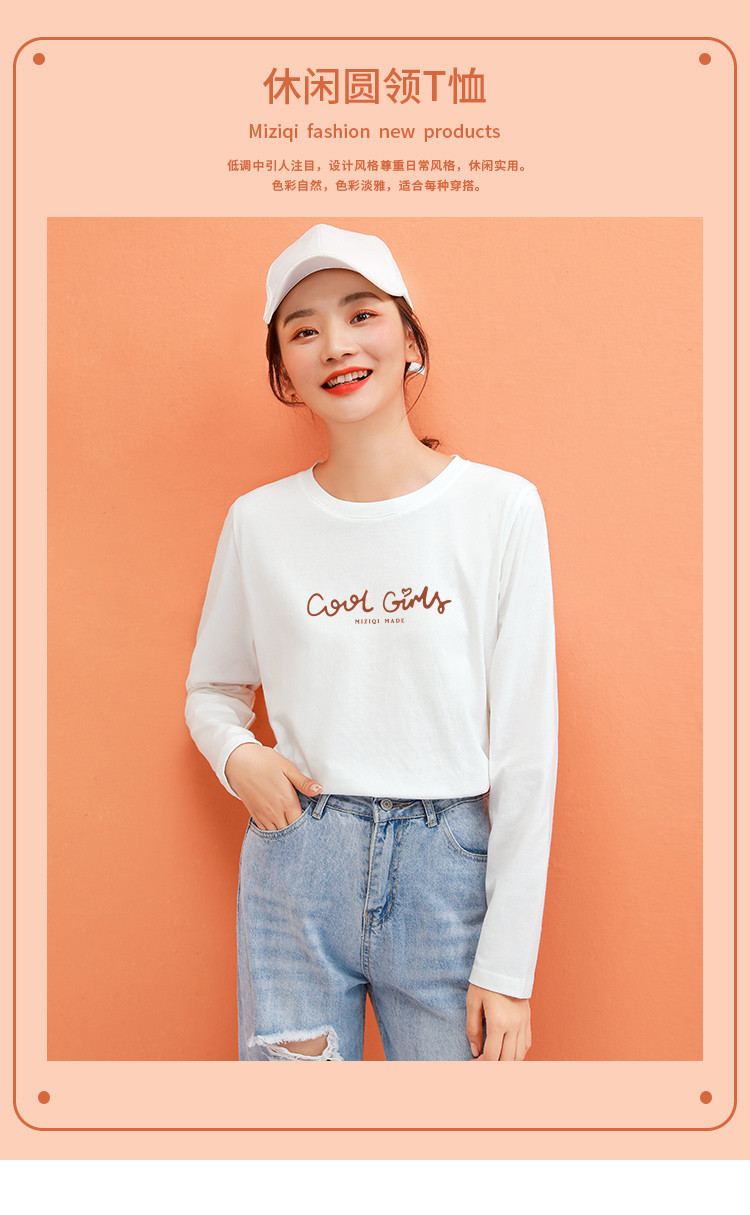 商品名称:米子旗春秋季款长袖圆领女T恤ins潮流款印花休闲百搭 574170