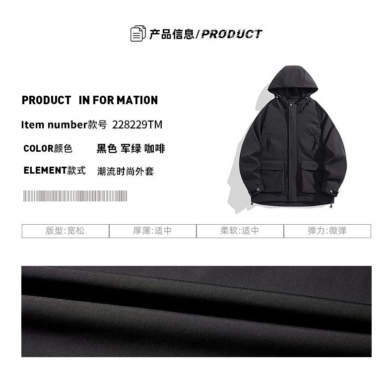 商品名称:曼西尔奴男士防风潮流时尚舒适百搭休闲连帽外套夹克228229TM