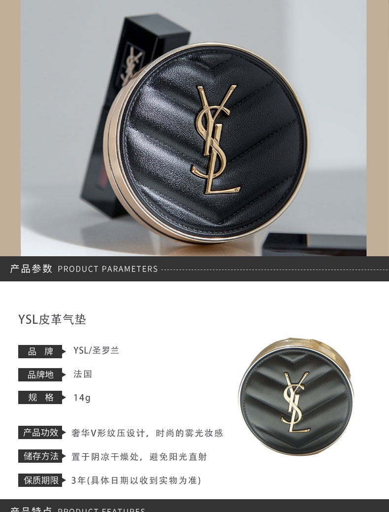 商品名称:【赠礼盒】YSL/圣罗兰 皮革气垫B10 14g+恒久粉底液LN1 25ml