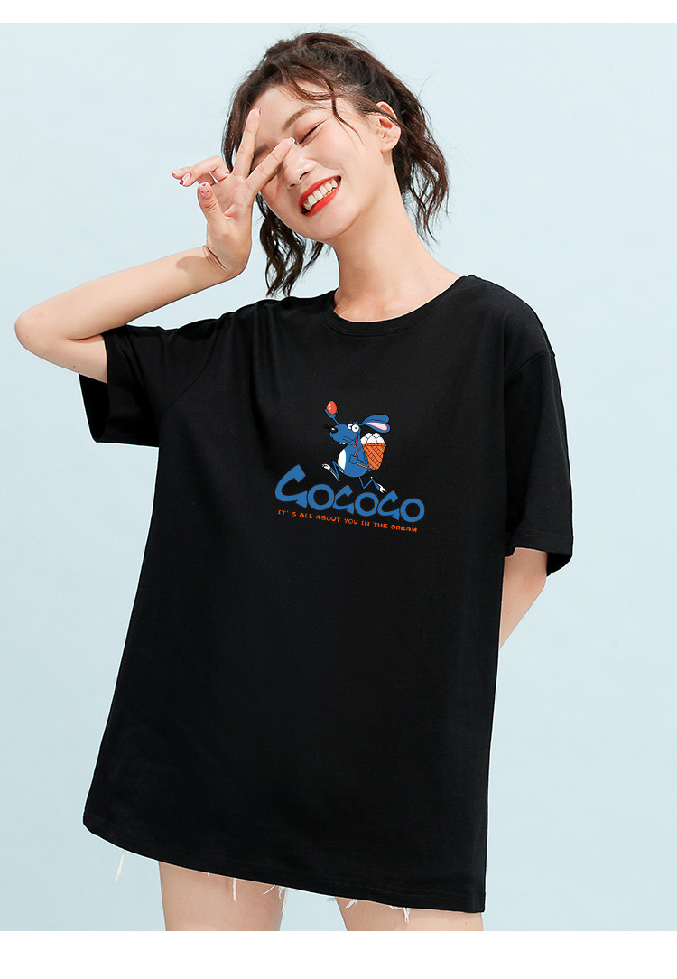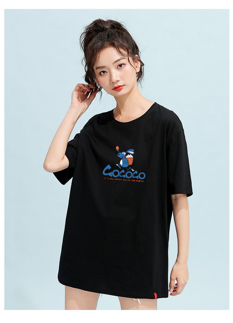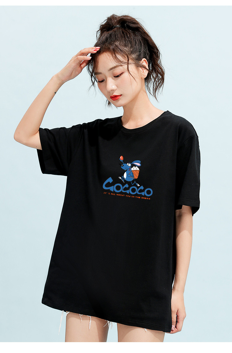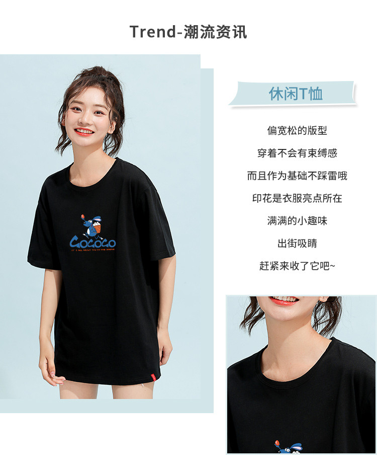商品名称:米子旗夏季中长款短袖印花女T恤休闲百搭上衣 760410