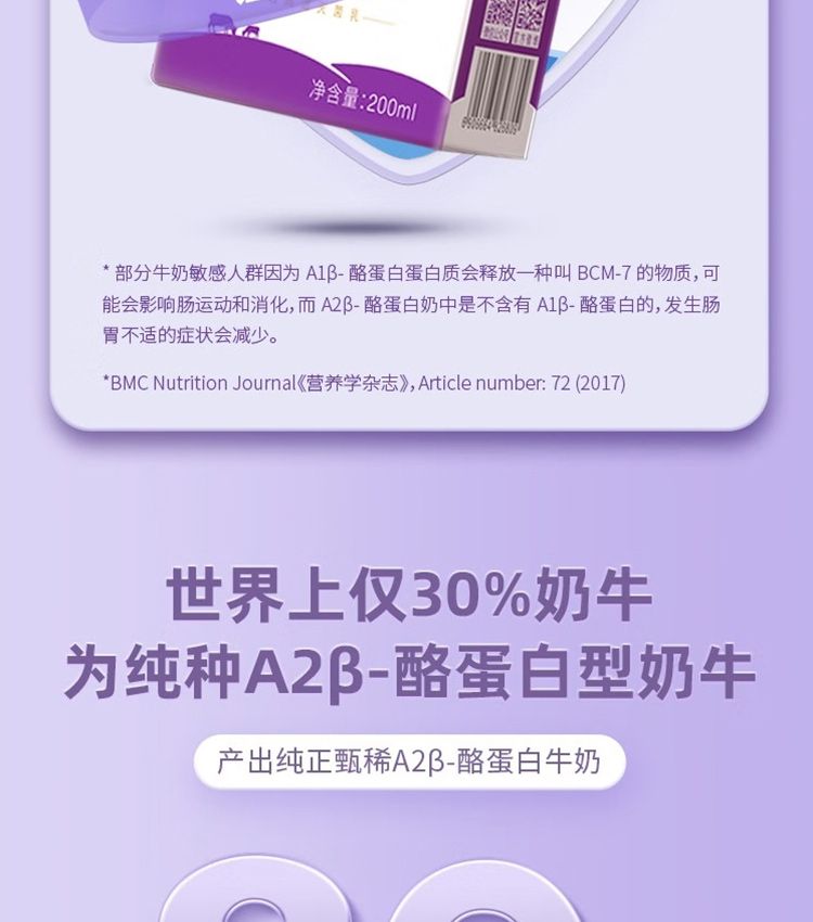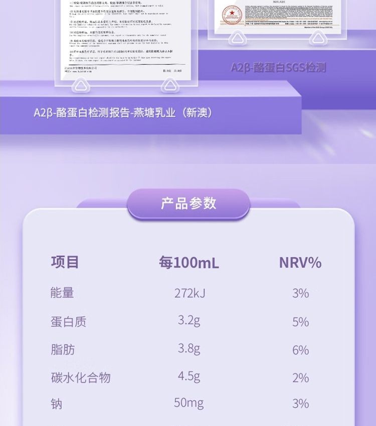 商品名称:燕塘A2β-酪蛋白纯牛奶200ml*10盒