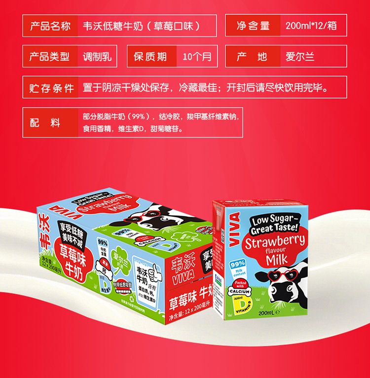 商品名称:爱尔兰进口韦沃草莓牛奶 200ml*12盒