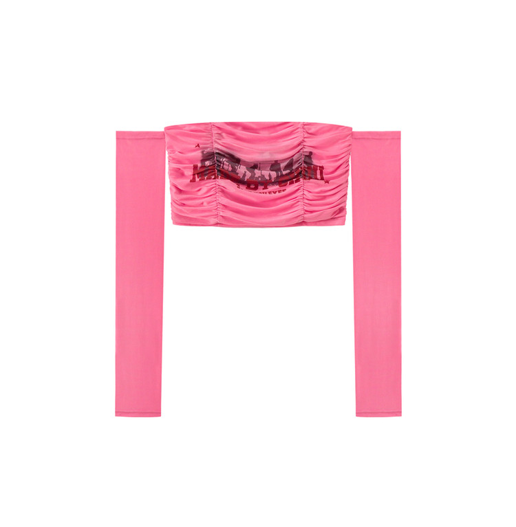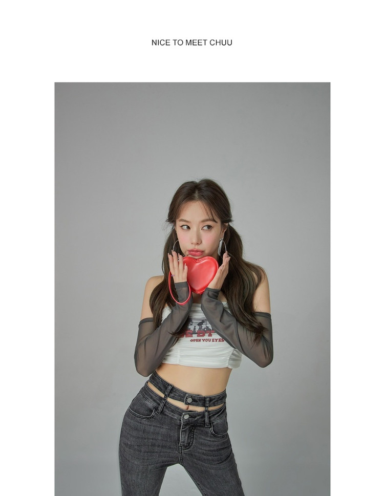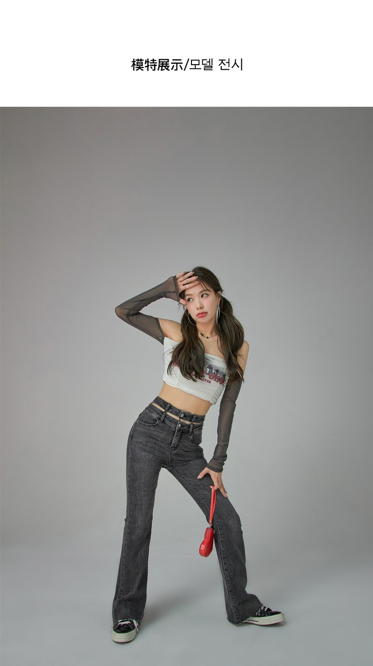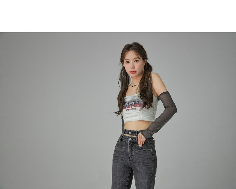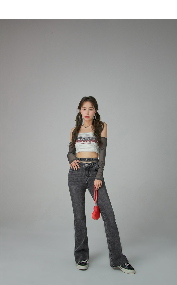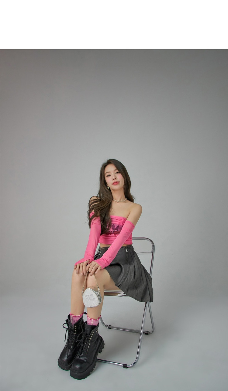 字母印花露锁骨长袖雪纺衫女春夏秋洋气紧身短款上衣 314899