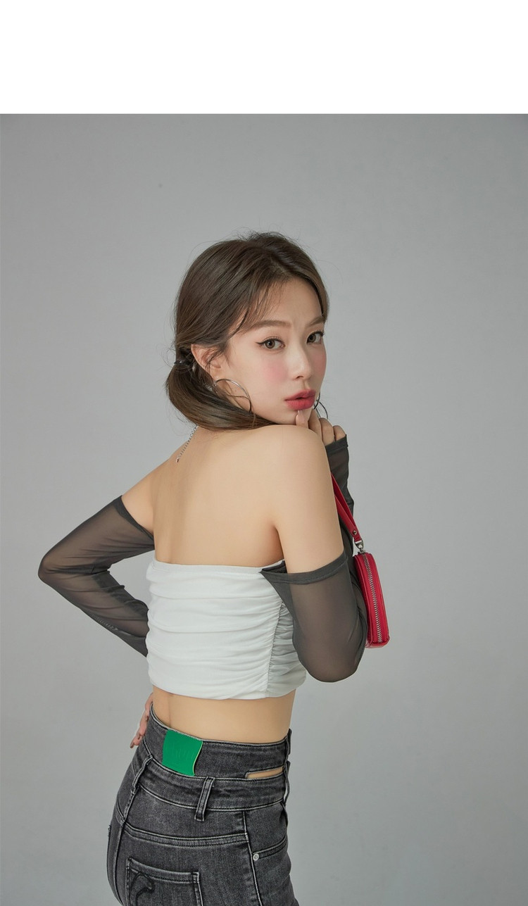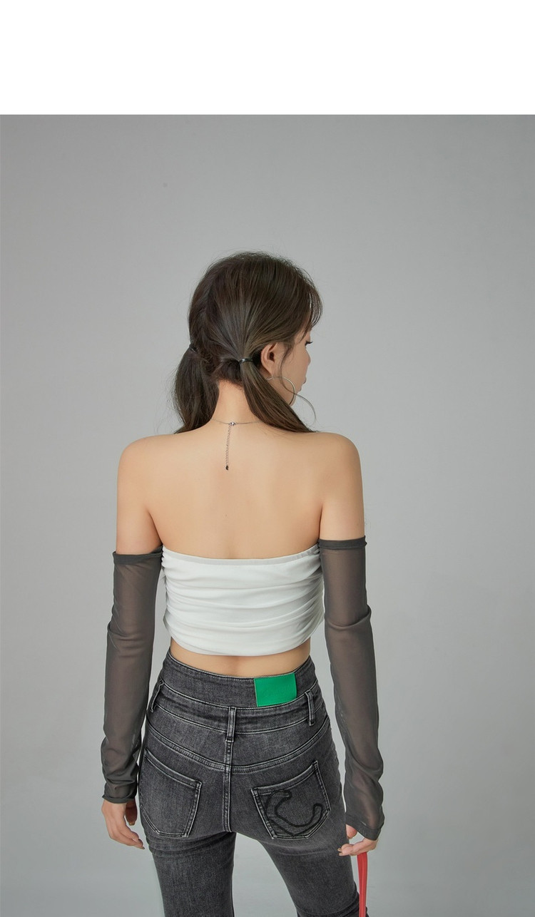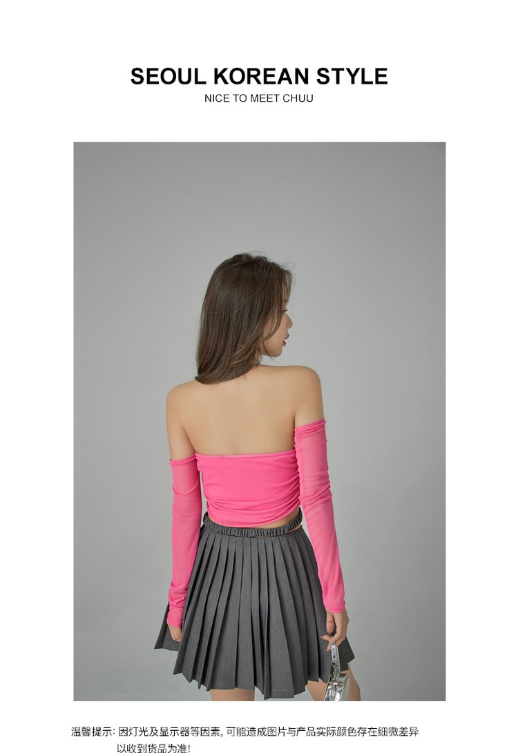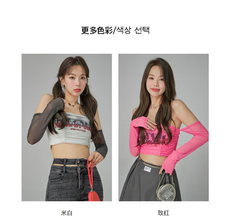 商品名称:字母印花露锁骨长袖雪纺衫女春夏秋洋气紧身短款上衣 314899