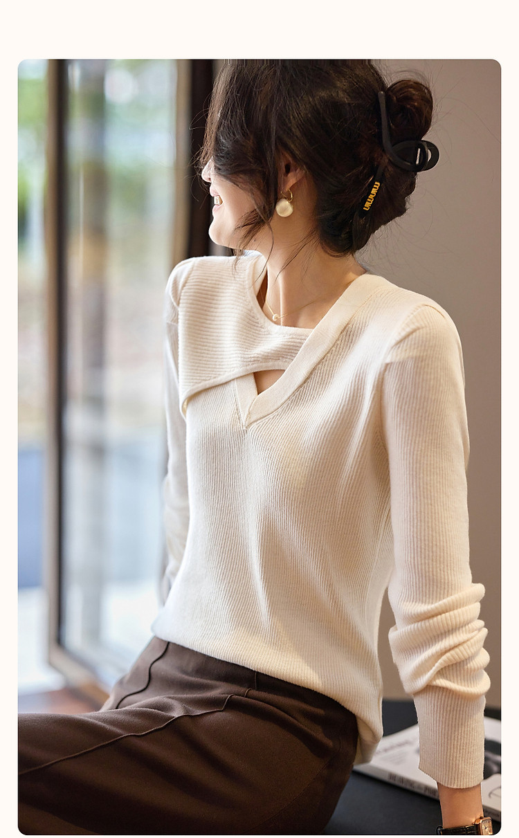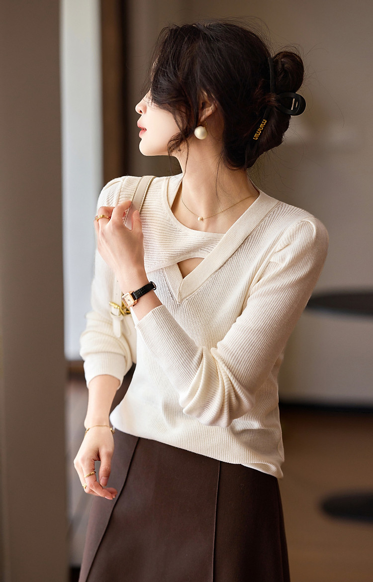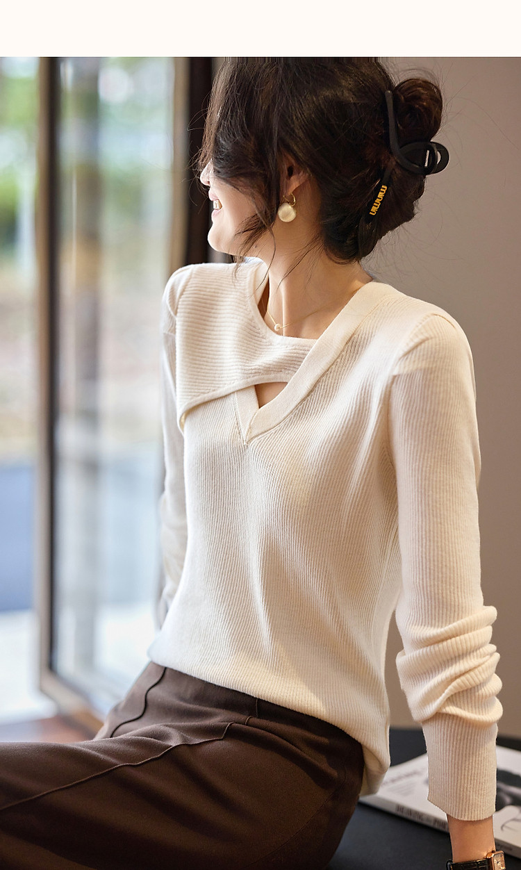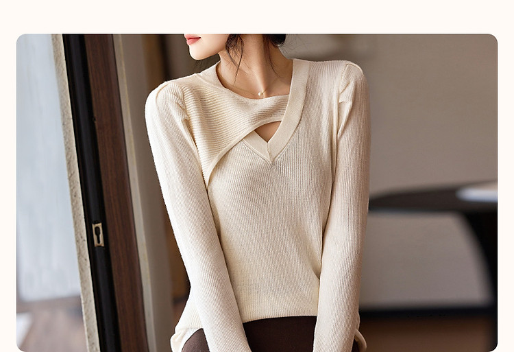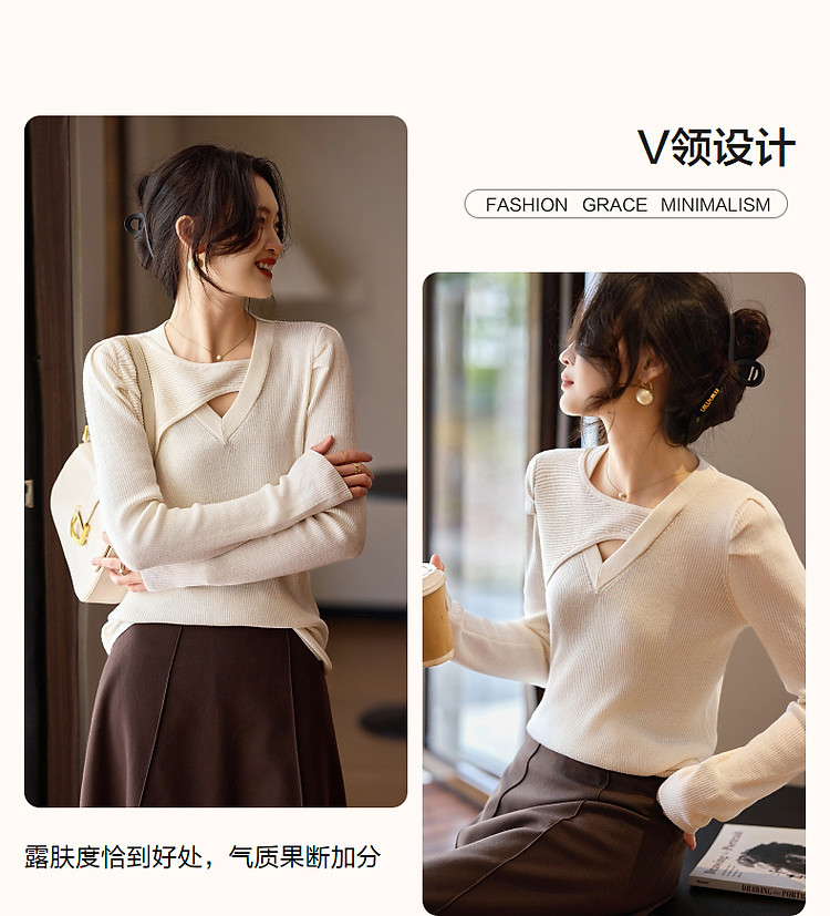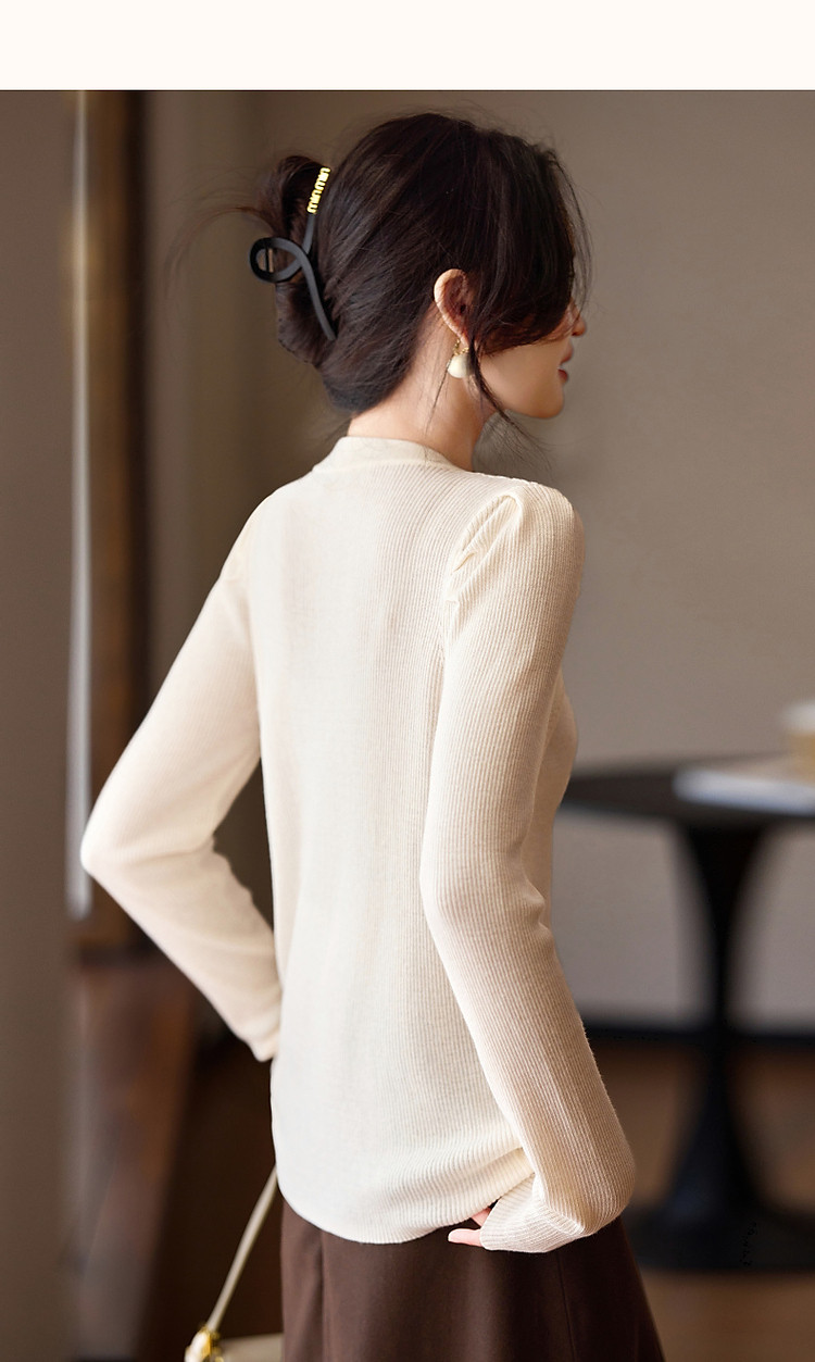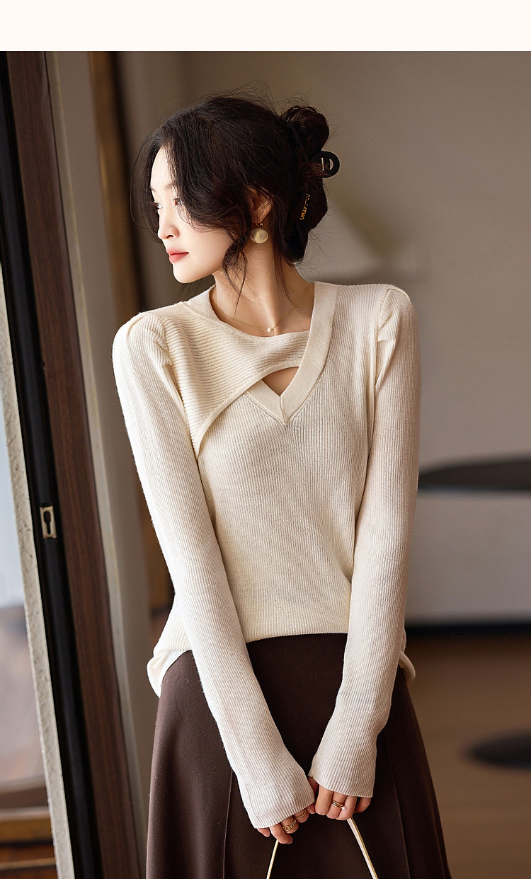 商品名称:【编织系灵感】秋温润镂空V领线衫泡泡袖松弛藏肉针织衫女上衣 803969