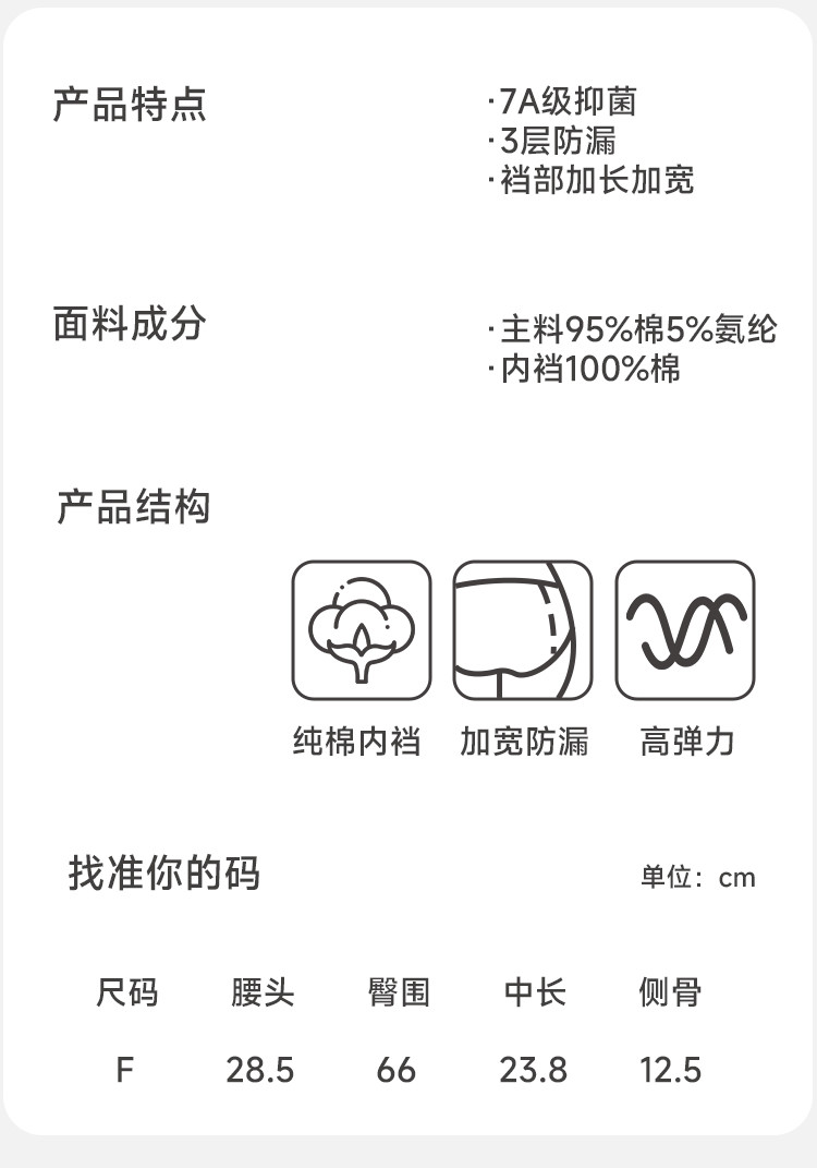 商品名称:【100%棉裆生理裤】7A抑菌裆加宽防侧漏内裤易清洗中腰姨妈 469131
