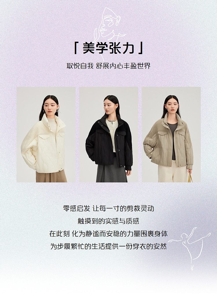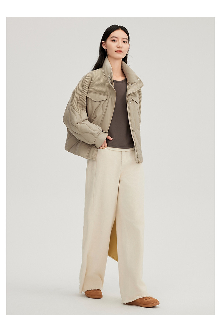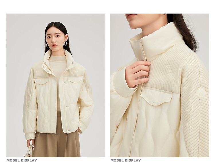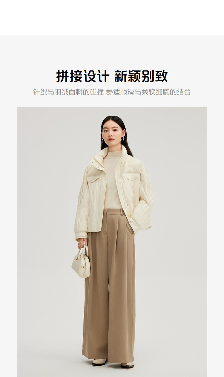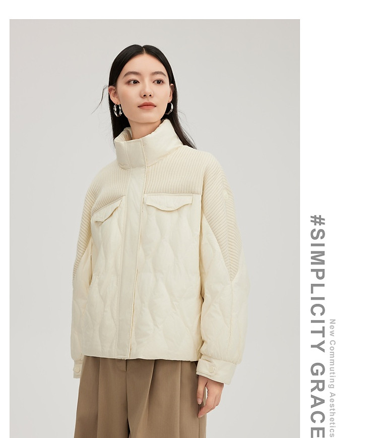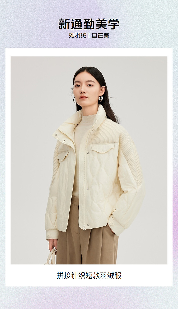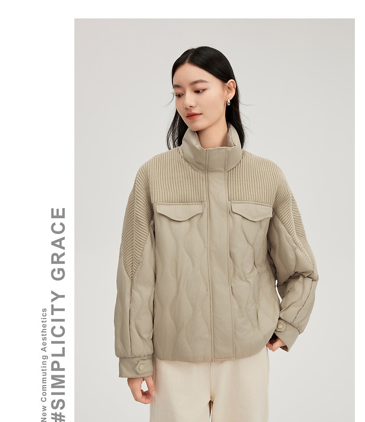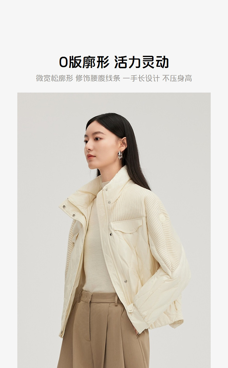 【都市系列】24款轻薄羽绒服女短款针织拼接立领外套女鸭绒服 645398