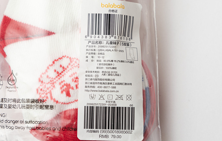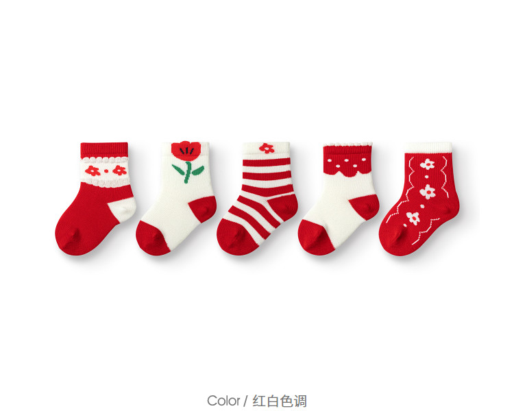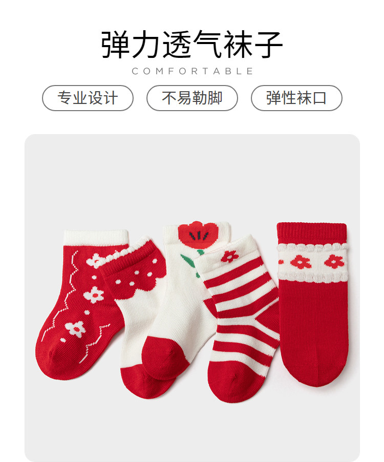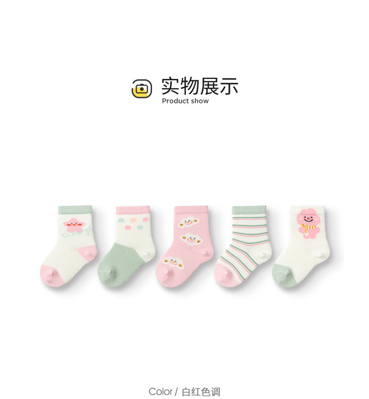 商品名称:A类五双装儿童袜子男童女童运动袜小童棉袜宝宝弹力春秋中筒袜 401157