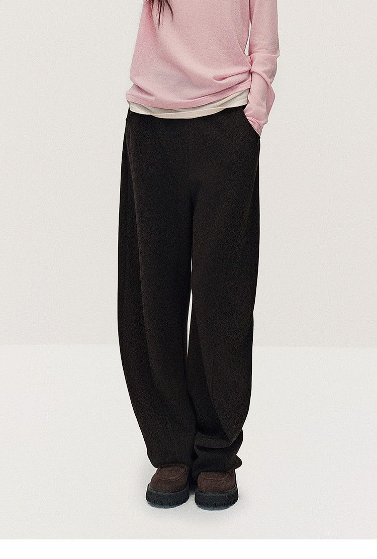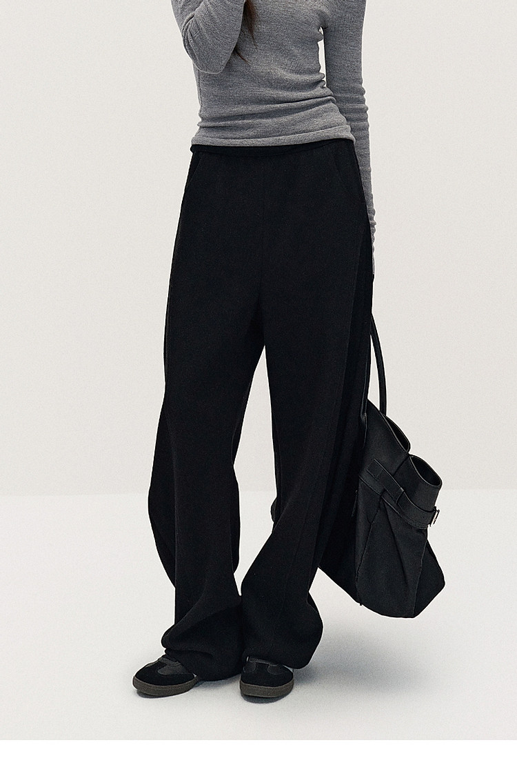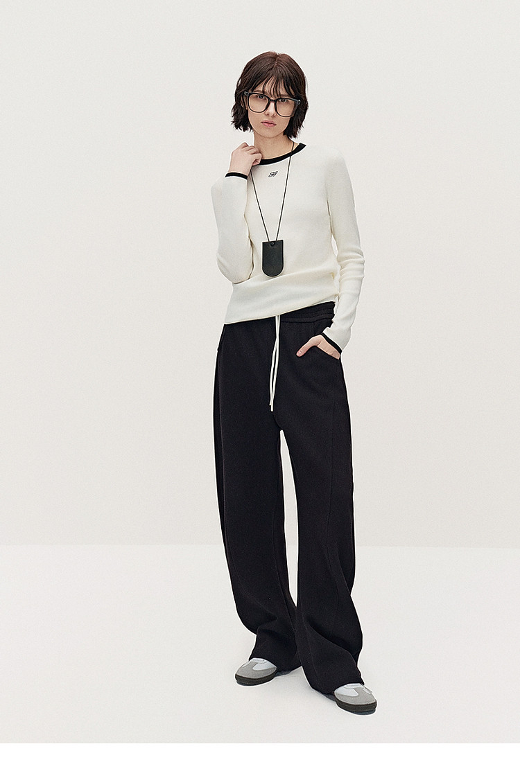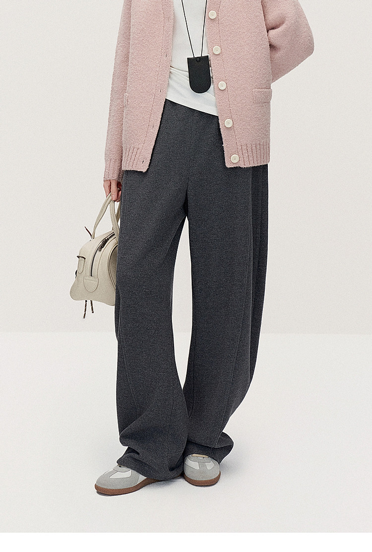 春装 宽松运动风时尚别致弯刀阔腿毛织长裤女 883215