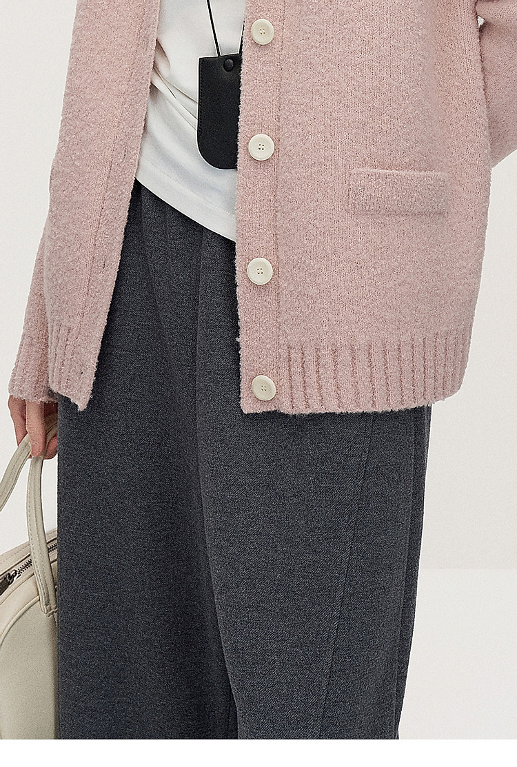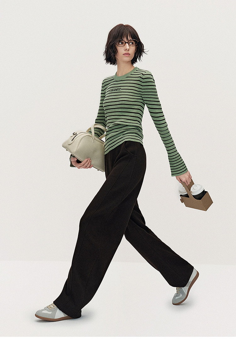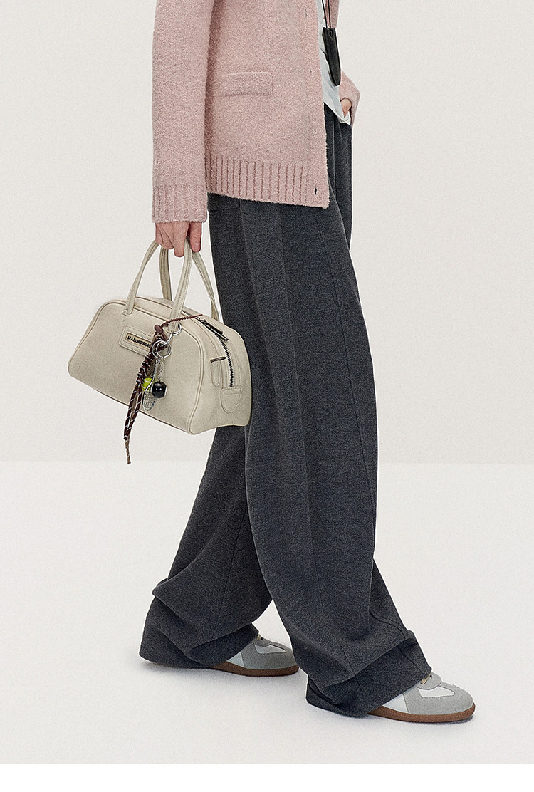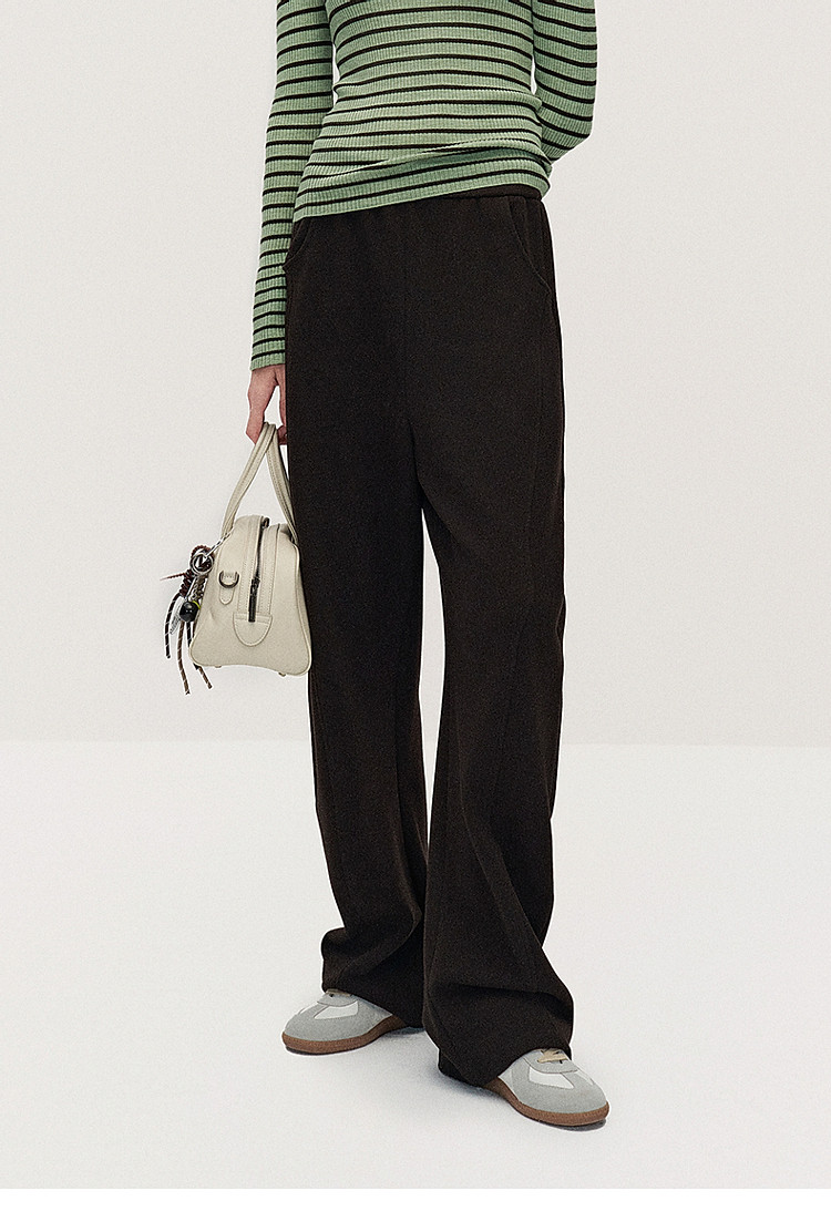 春装 宽松运动风时尚别致弯刀阔腿毛织长裤女 883215