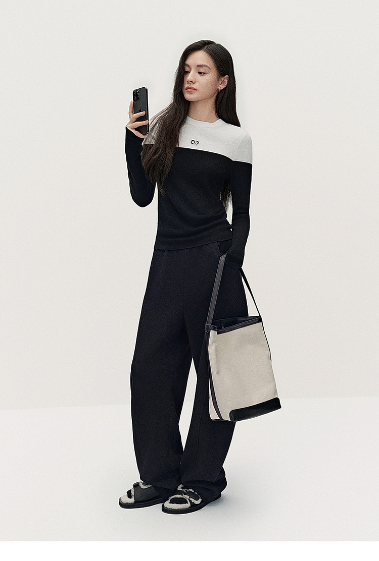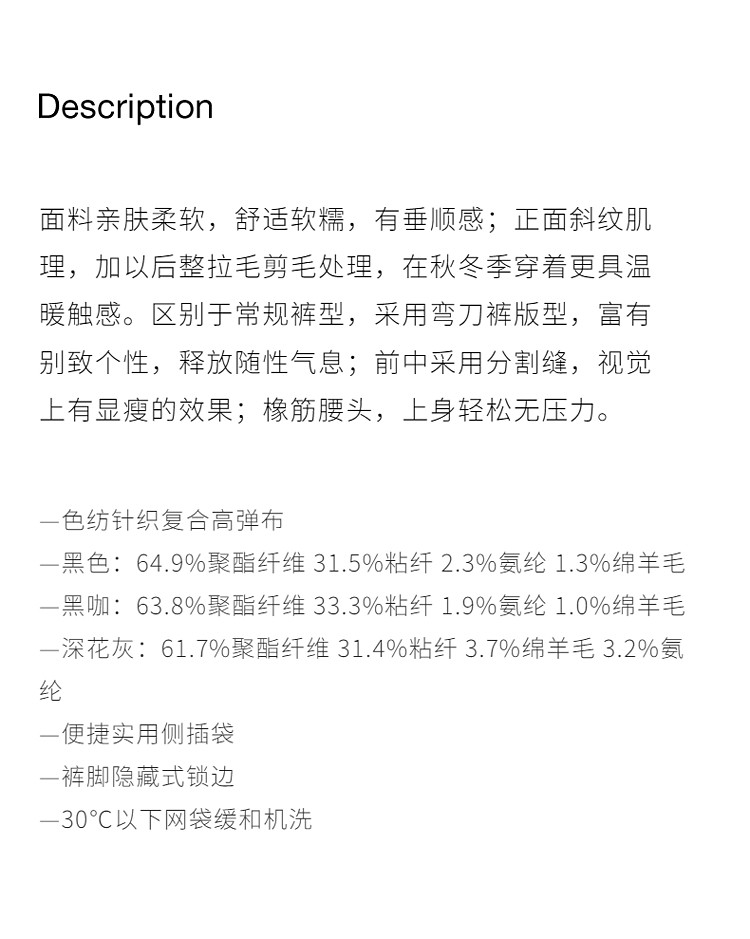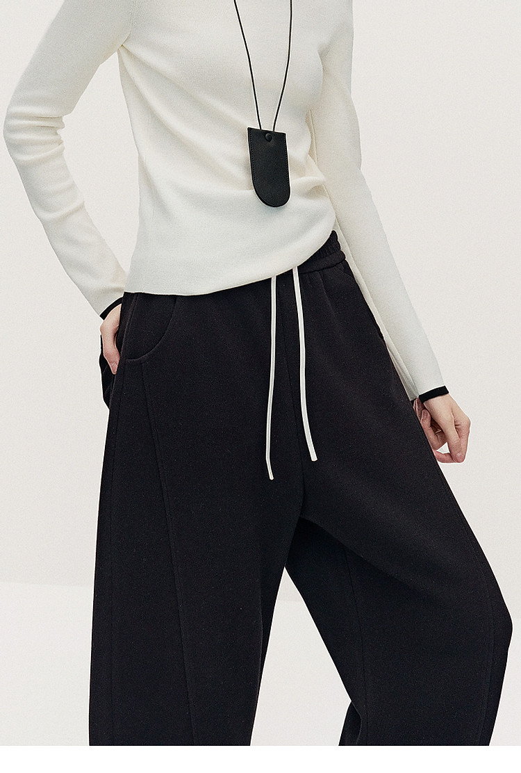 商品名称:春装 宽松运动风时尚别致弯刀阔腿毛织长裤女 883215