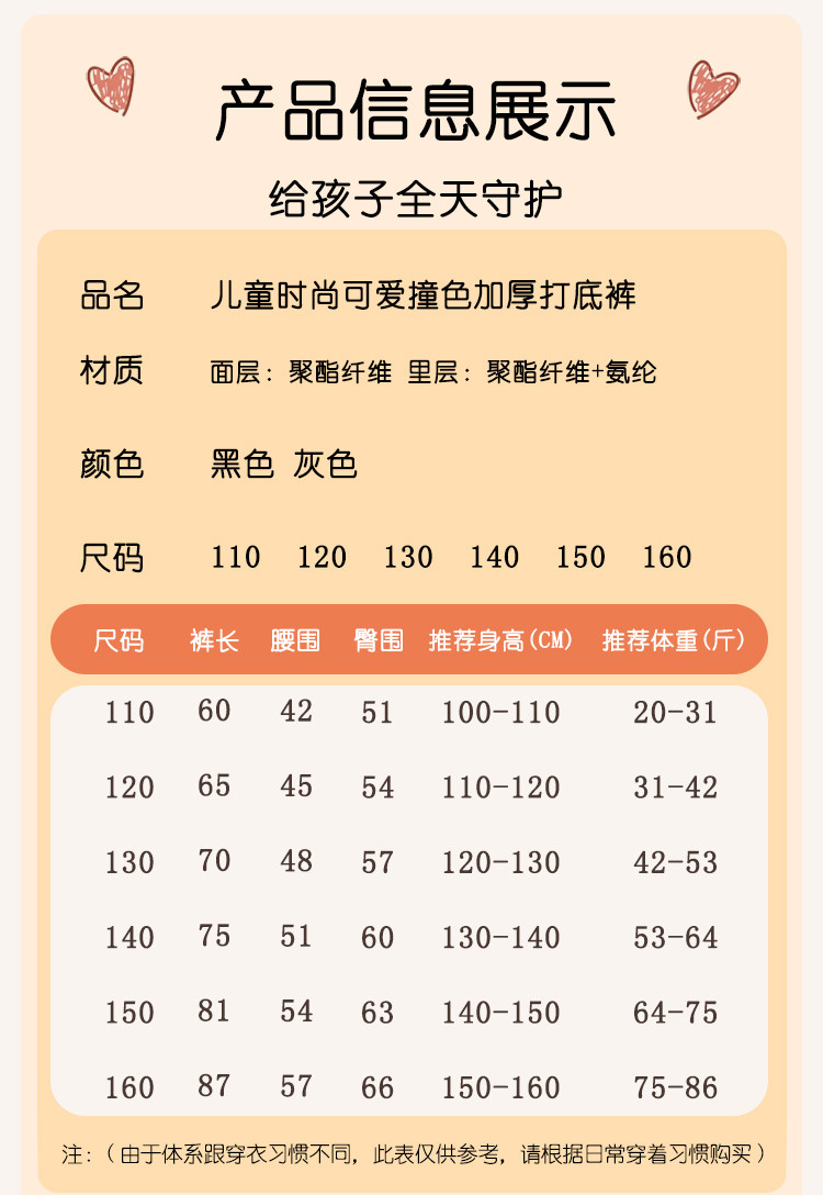 商品名称:【加绒加厚保暖裤】儿童时尚可爱撞色打底裤春秋冬男女童保暖裤 876766
