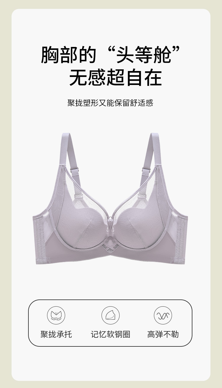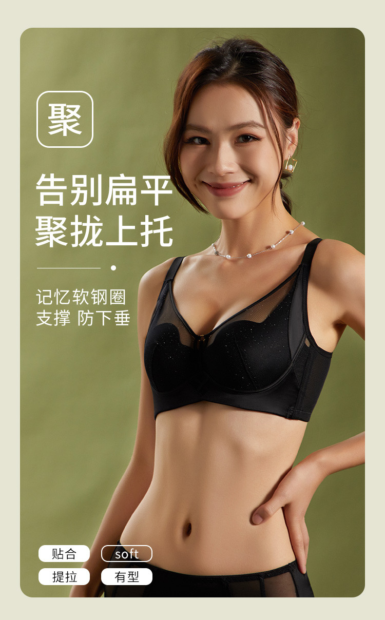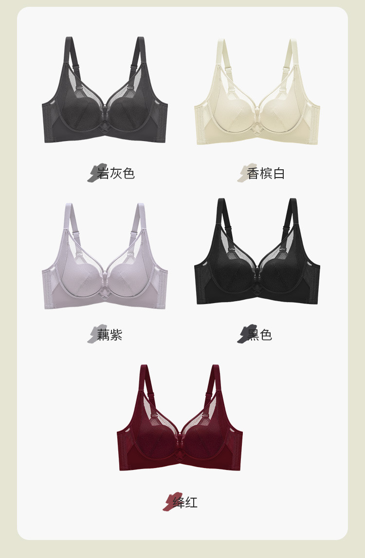 商品名称:【大胸显小】性感软钢圈文胸女士内衣防下垂收副乳上托透气胸罩 602827