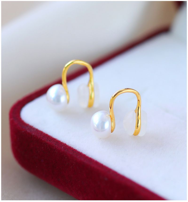 商品名称:金灿灿 淡水珍珠耳夹S925银【无耳洞小仙女的福音】【A340】
