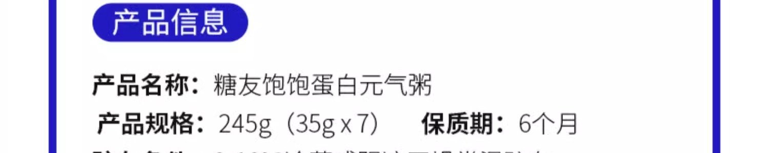 商品名称:糖友厨房 蛋白元气粥245g/盒(35g*7袋)