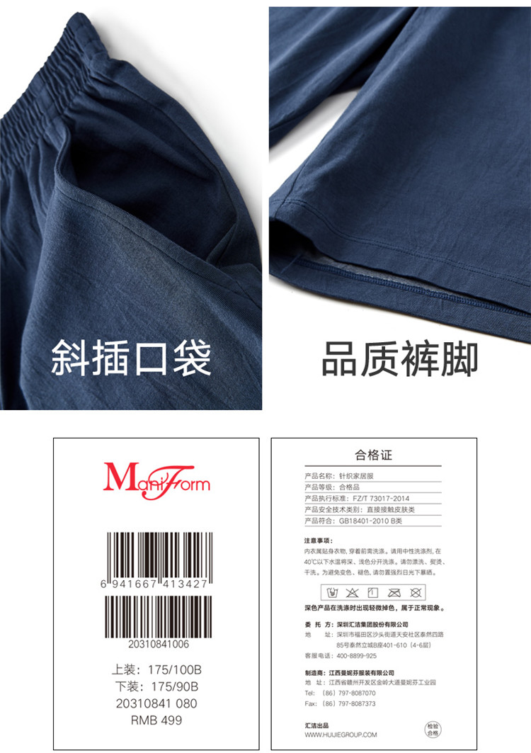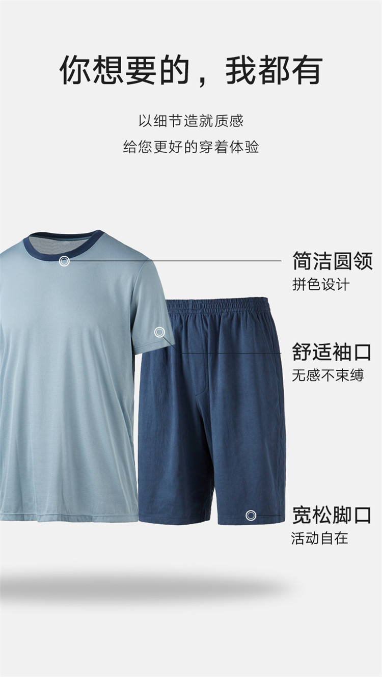 商品名称:【清爽透气孔】撞色圆领男士家居服短袖短裤套装可外穿休闲睡衣 275483