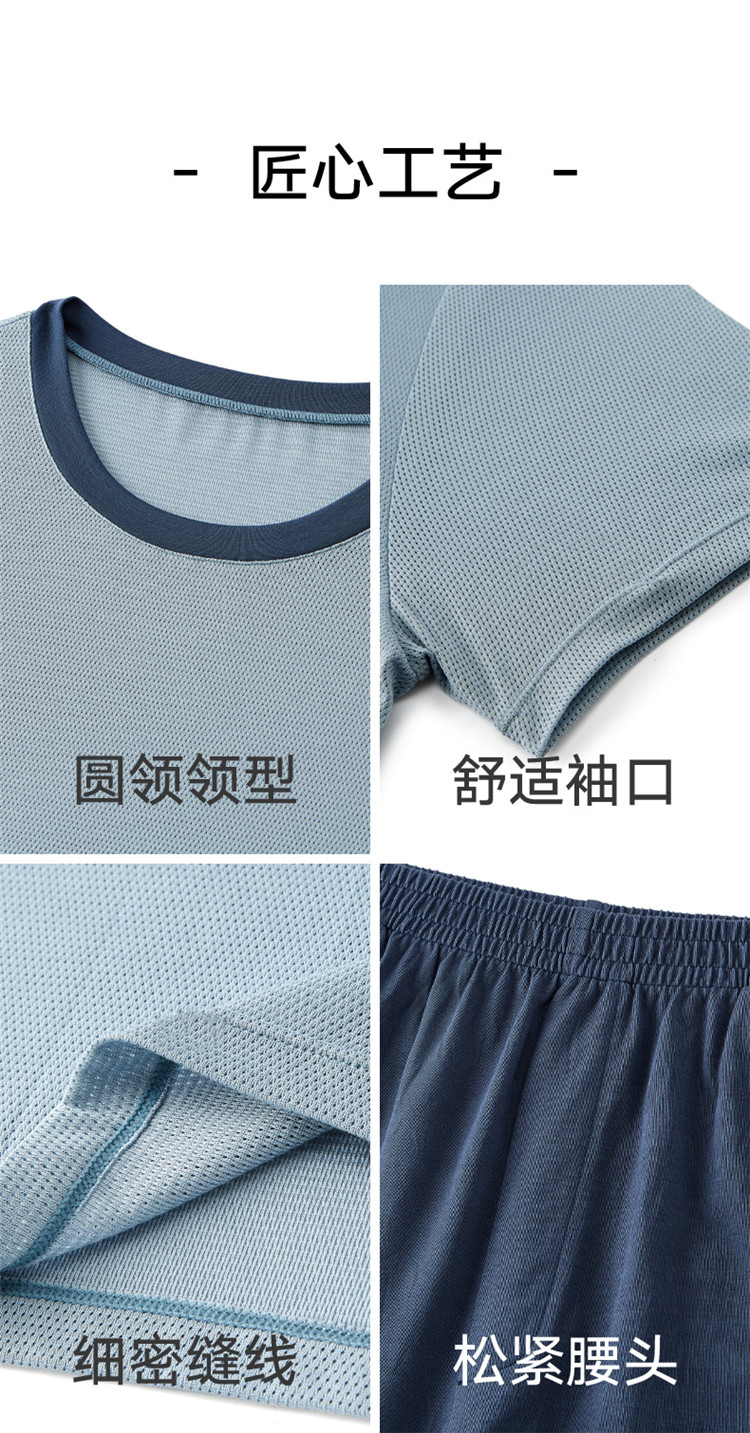 【清爽透气孔】撞色圆领男士家居服短袖短裤套装可外穿休闲睡衣 275483