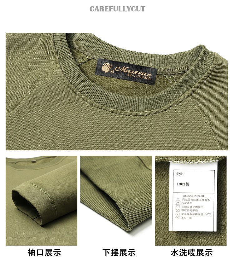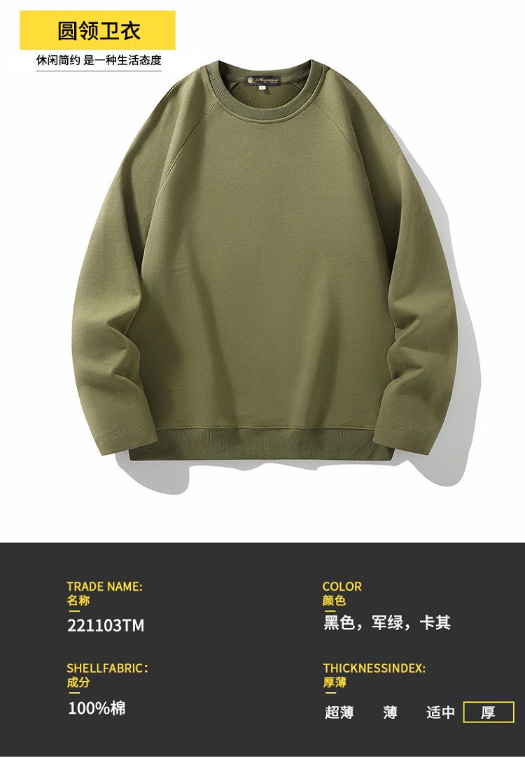 商品名称:曼西尔奴男士纯色简约宽松百搭舒适纯棉保暖磨毛卫衣221103TM